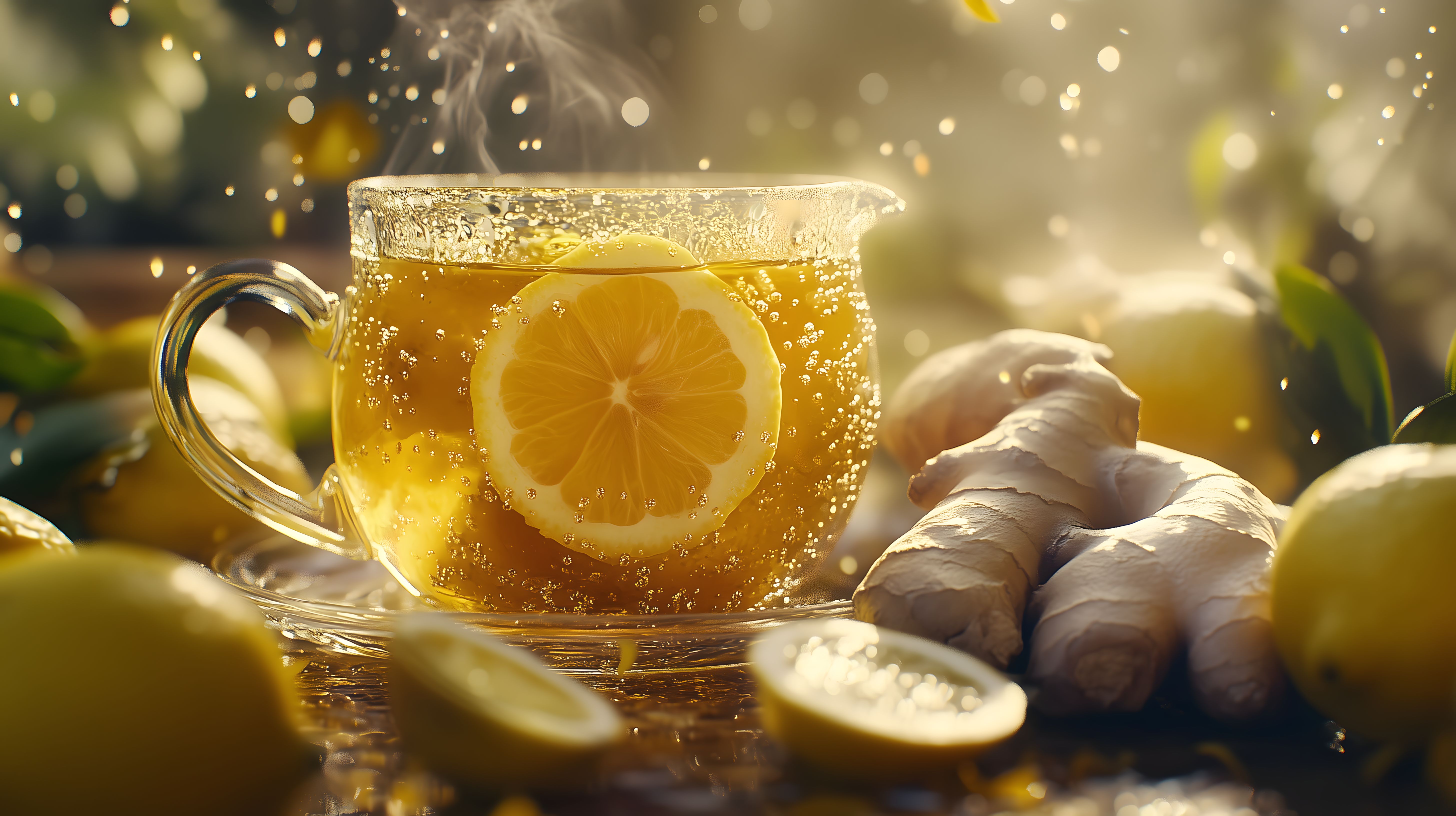 Dieses einladende Foto zeigt ein dampfendes Getränk in einem durchsichtigen Glasbecher. Die Zitronenscheibe und die Ingwerstücke verleihen dem Getränk einen frischen, natürlichen Charakter. Das warme, goldene Licht, das durch den Becher scheint, erzeugt einen gemütlichen und stimmungsvollen Eindruck. Dieses Stockfoto in hoher Auflösung eignet sich perfekt für den Einsatz in Blogs, Newslettern, Social-Media-Posts oder Werbematerialien, die ein gesundes, erfrischendes Lebensgefühl vermitteln möchten. Es steht unter einer Creative-Commons-Lizenz zur freien Nutzung zur Verfügung.