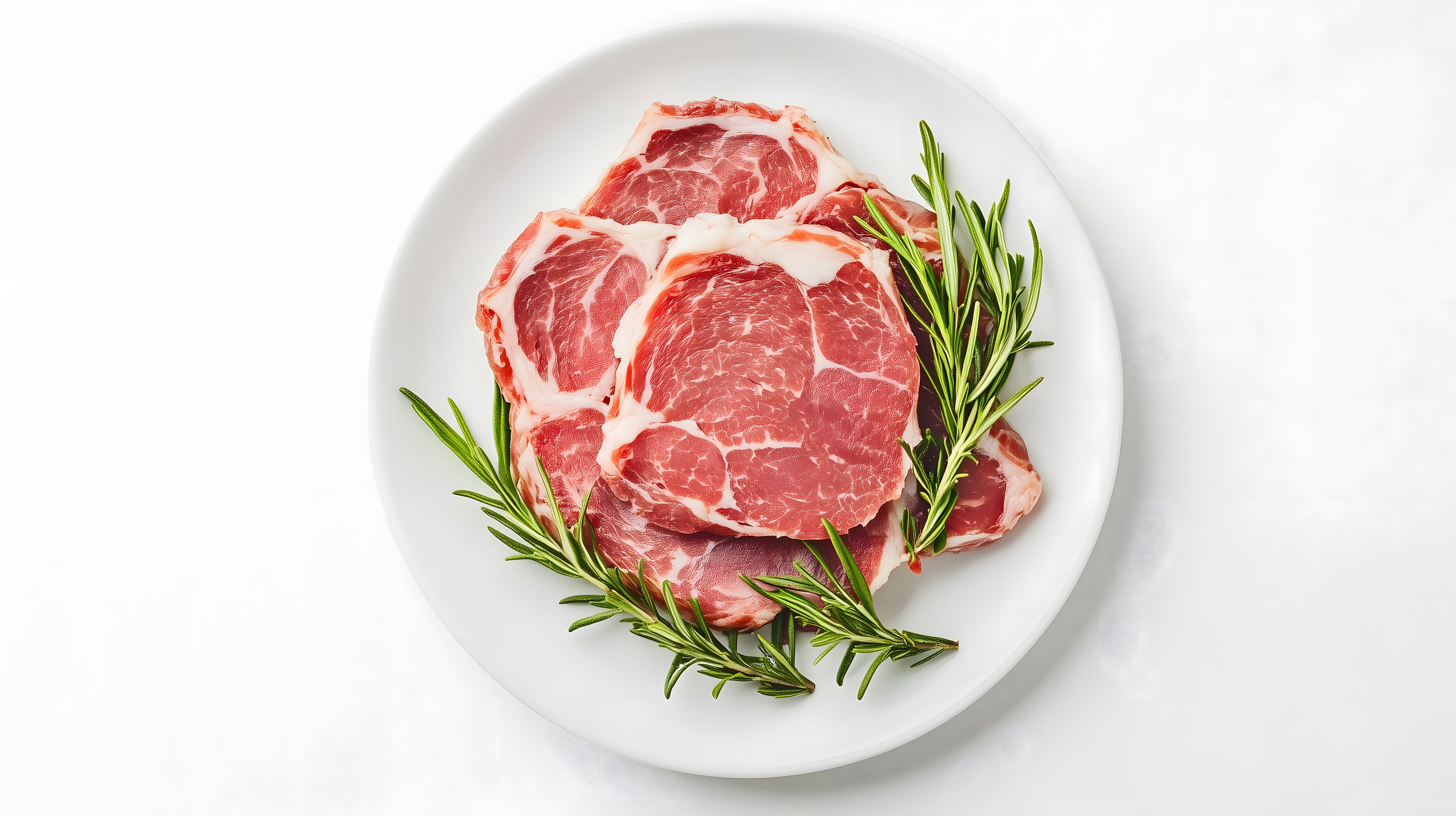 Frisches Fleisch mit Rosmarin auf weißem Teller von Marco Verch unter Creative Commons 2.0