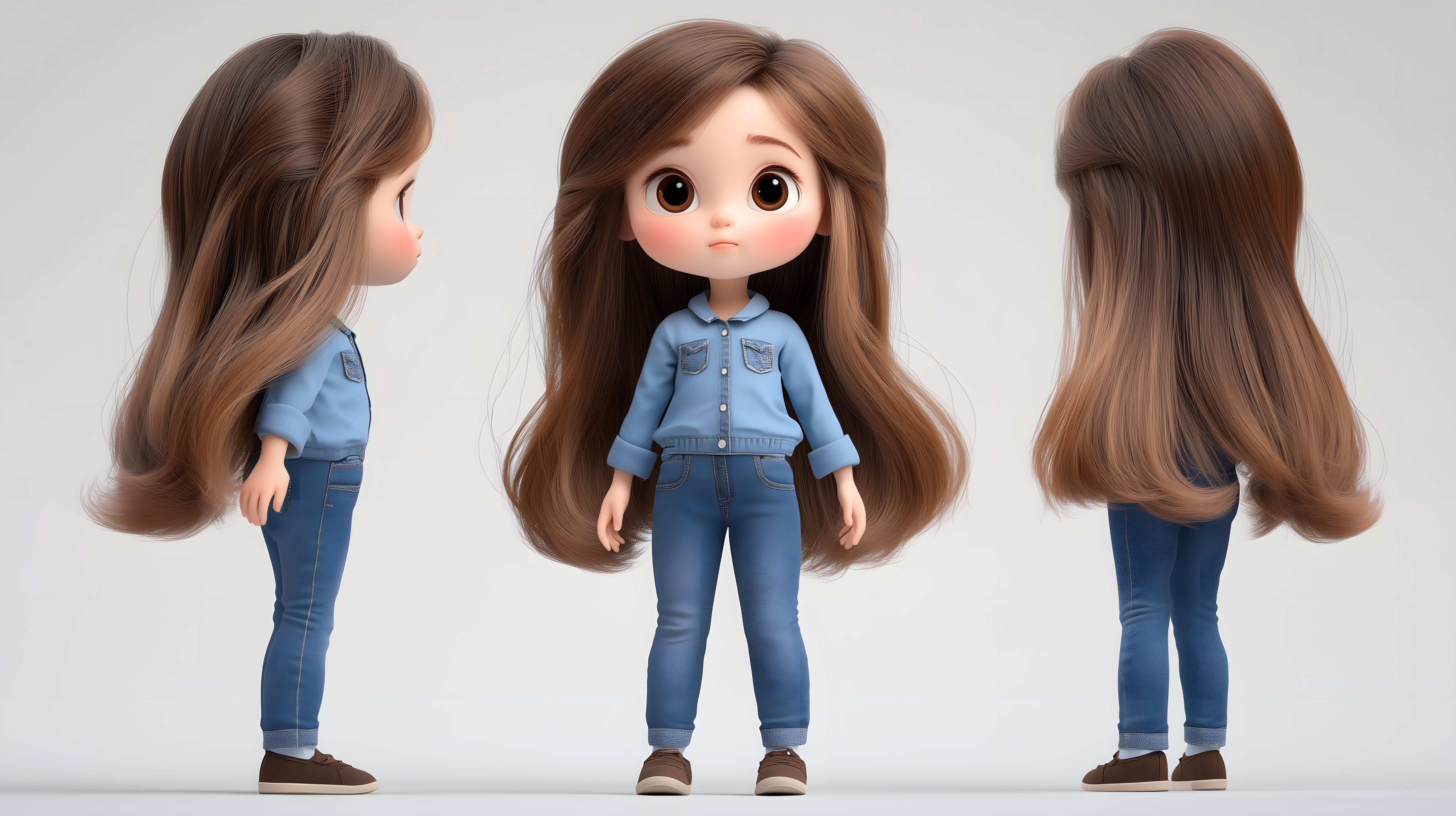 Das Bild zeigt ein 3D-illustriertes Mädchen mit langen braunen Haaren, das mit einem hellblauen Hemd und Jeans bekleidet ist. Die Figur hat einen freundlichen, fast schüchternen Gesichtsausdruck und steht in einer natürlichen, entspannten Haltung. Das Foto könnte ideal für Lifestyle-Blogs, Social-Media-Beiträge oder Werbekampagnen verwendet werden, die ein junges, modisches Publikum ansprechen möchten. Dieses hochauflösende, kostenlose Stockfoto ist unter der Creative-Commons-Lizenz verfügbar.