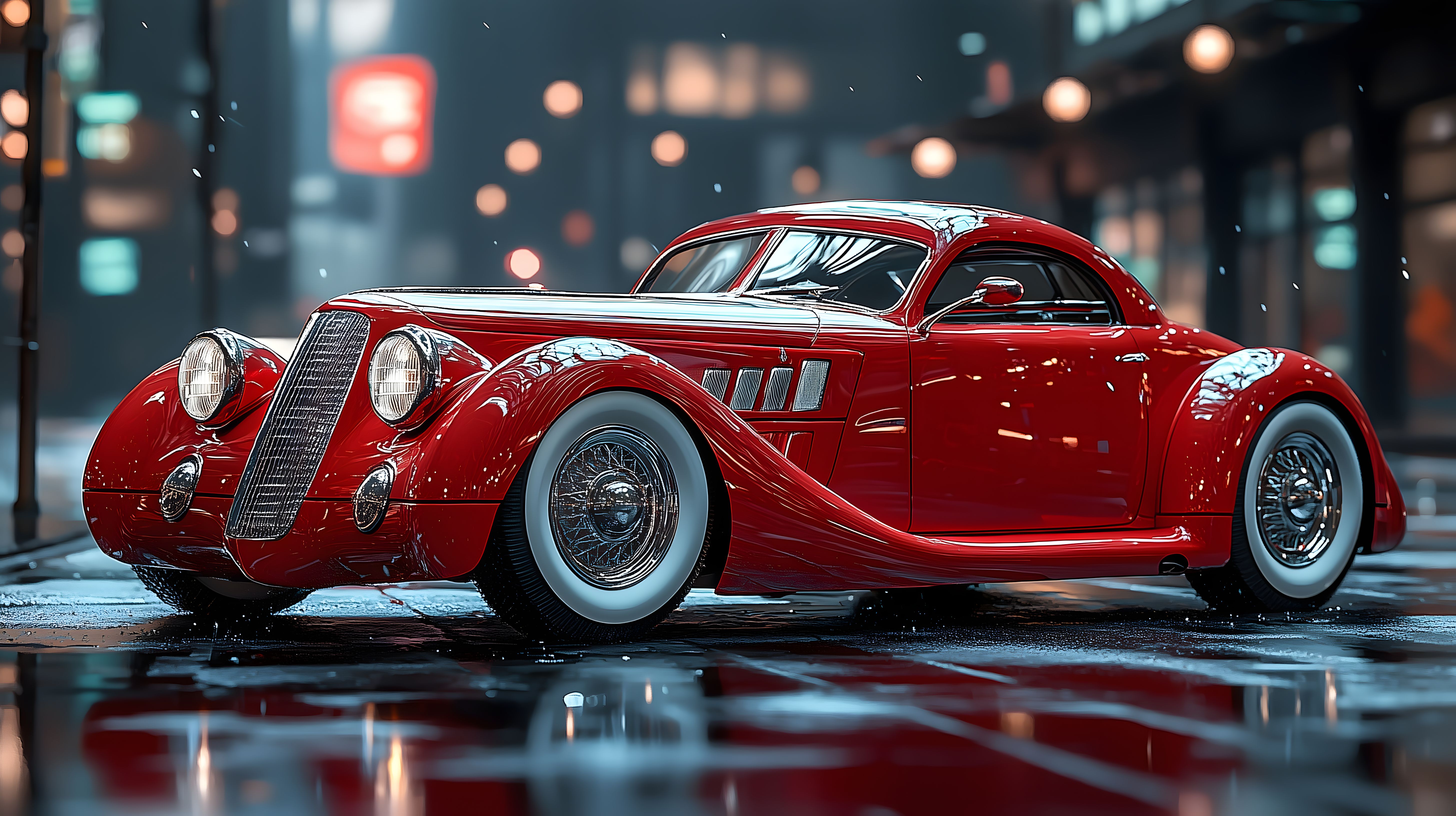 Dieses beeindruckende Foto zeigt einen eleganten, roten Oldtimer, der bei Nacht auf einer regennassen Straße steht. Die Straßenbeleuchtung spiegelt sich in den glänzenden Oberflächen des Fahrzeugs wider, was eine stimmungsvolle, fast mystische Atmosphäre schafft. Der Kontrast zwischen dem klassischen Sportwagen-Design und der modernen, städtischen Umgebung verleiht dem Bild einen einzigartigen Charakter. Dieses hochauflösende Stockfoto eignet sich hervorragend für die Verwendung in Blogs, Newslettern, Social-Media-Beiträgen oder Werbematerialien, in denen ein Hauch von Vintage-Eleganz und Nostalgie vermittelt werden soll. Das Foto steht unter der Creative-Commons-Lizenz zur freien Nutzung zur Verfügung.
