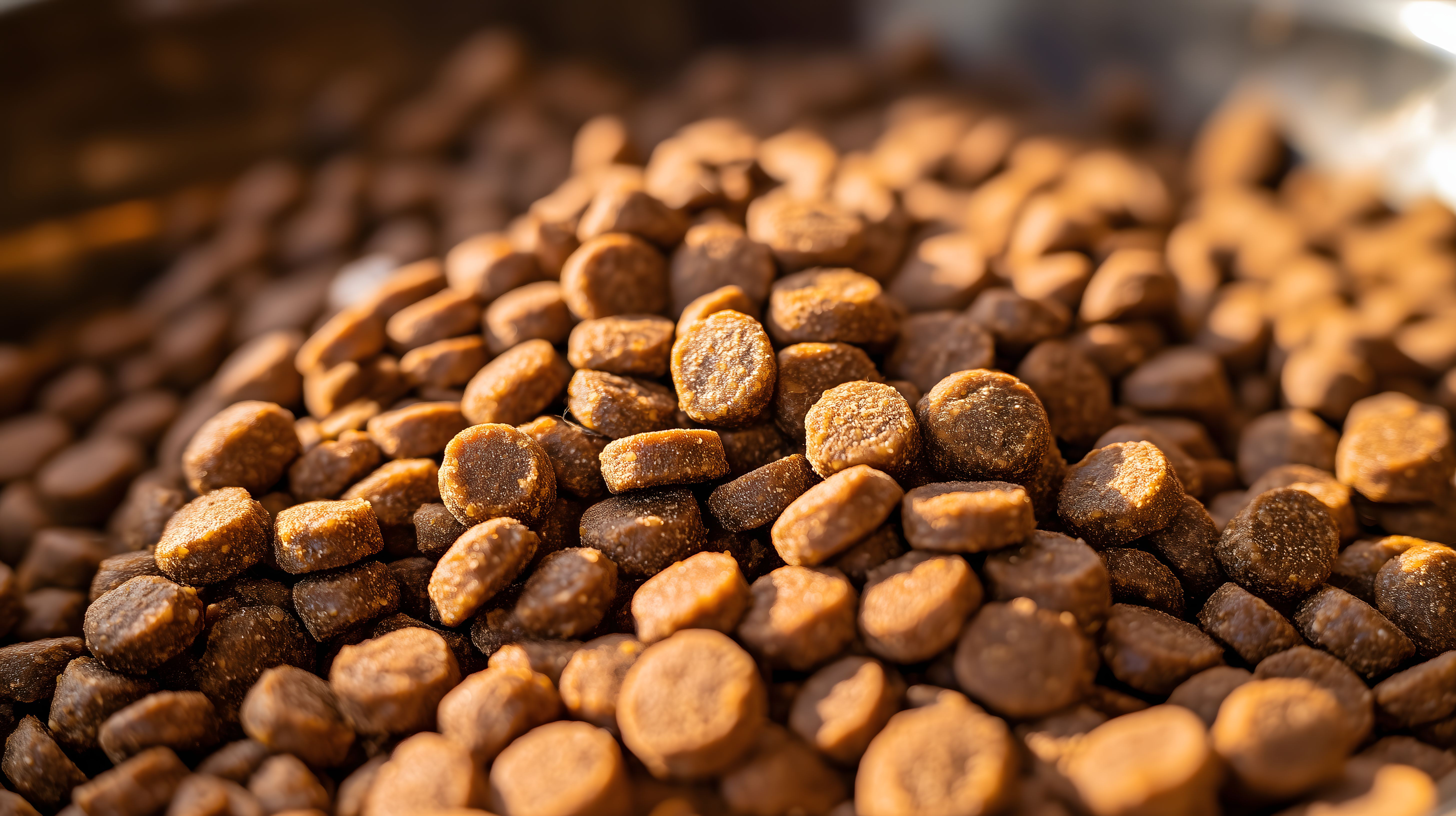 Dieses Foto zeigt eine detaillierte Nahaufnahme von knusprigen Hundenäpfen. Die Näpfe sind in einem natürlichen, rustikalen Ambiente angeordnet und präsentieren eine warme, erdige Farbpalette. Die Textur der Futter-Nuggets ist körnig und appetitlich, was auf eine hochwertige Zusammensetzung hindeutet. Dieses Stockfoto eignet sich hervorragend für Blogbeiträge, Newsletter-Designs oder Social-Media-Postings zum Thema Hundeernährung, Haustierprodukte oder gesunde Lebensmittel. Das Foto ist in hoher Auflösung verfügbar und unter einer Creative-Commons-Lizenz nutzbar.