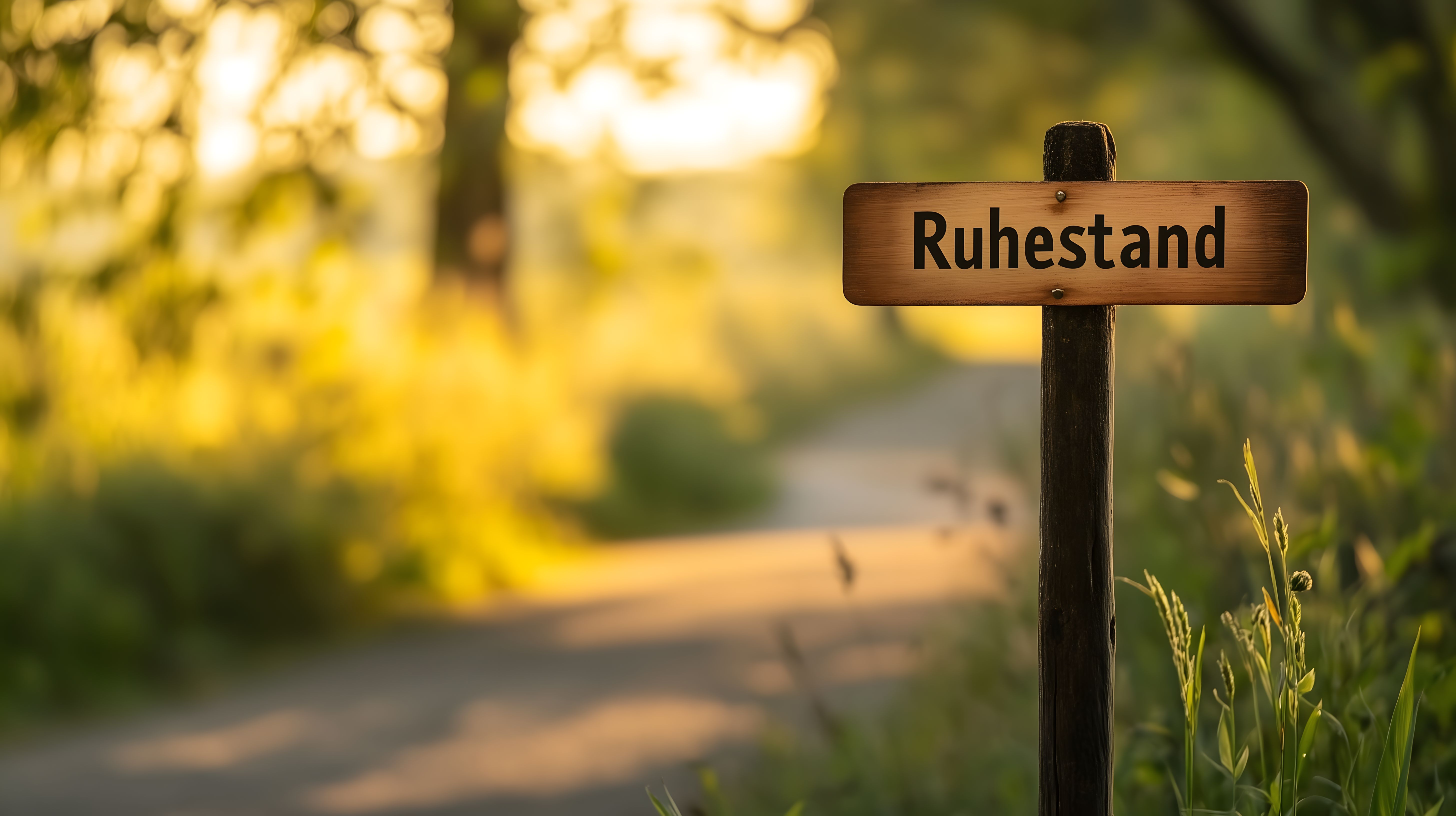 Das Bild zeigt ein Holzschild mit der Aufschrift 'Ruhestand', das an einem Naturweg inmitten einer herbstlichen oder frühlingshaften Waldlandschaft platziert ist. Die Umgebung ist weich und unscharf, was den Fokus auf das Schild lenkt. Die goldenen Sonnenstrahlen tauchen die Szene in ein warmes, einladendes Licht und verleihen der Aufnahme eine friedliche, entspannte Stimmung. Dieses kostenlose Stockfoto in hoher Auflösung unter Creative-Commons-Lizenz wäre perfekt für die Verwendung in Blogbeiträgen, Newsletter-Artikeln oder Werbekampagnen zu Themen wie Pensionierung, Altersvorsorge oder Lebensqualität im Ruhestand.