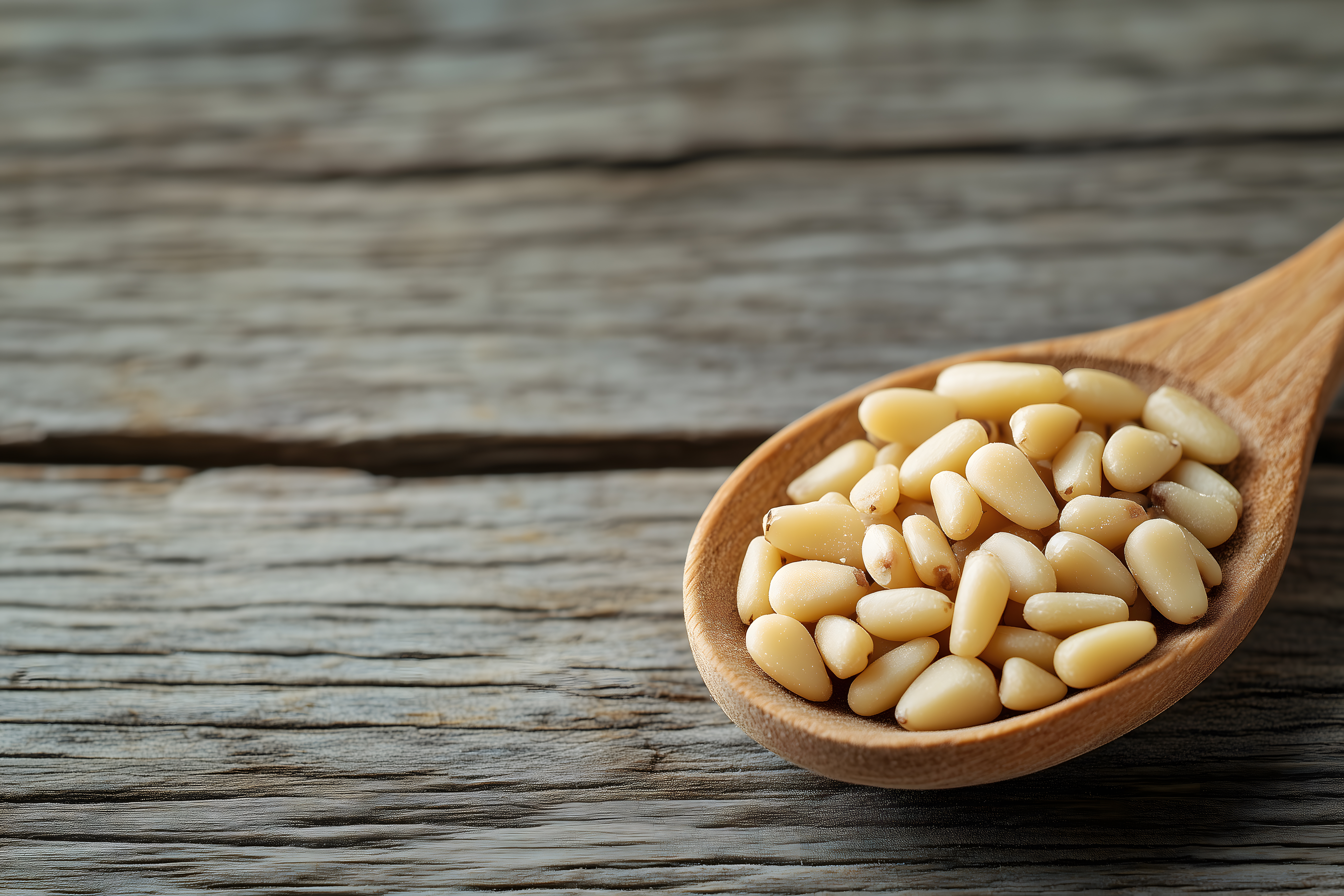 Dieses Bild zeigt eine Holzschale voller köstlicher Pinienkernsamen. Die Samen haben eine goldgelbe Farbe und eine leicht unregelmäßige, natürliche Form. Sie sind auf einem dunklen, rustikalen Holzbrett angeordnet, was einen schönen Kontrast zu den hellen Samen schafft. Dieses Foto eignet sich hervorragend für Rezeptblogs, Newsletter-Bilder oder Social-Media-Beiträge, die sich mit gesunden Snacks, Superfood oder Paleo-Ernährung befassen. Als kostenloses Stockfoto in hoher Auflösung und unter Creative-Commons-Lizenz kann es vielfältig eingesetzt werden.