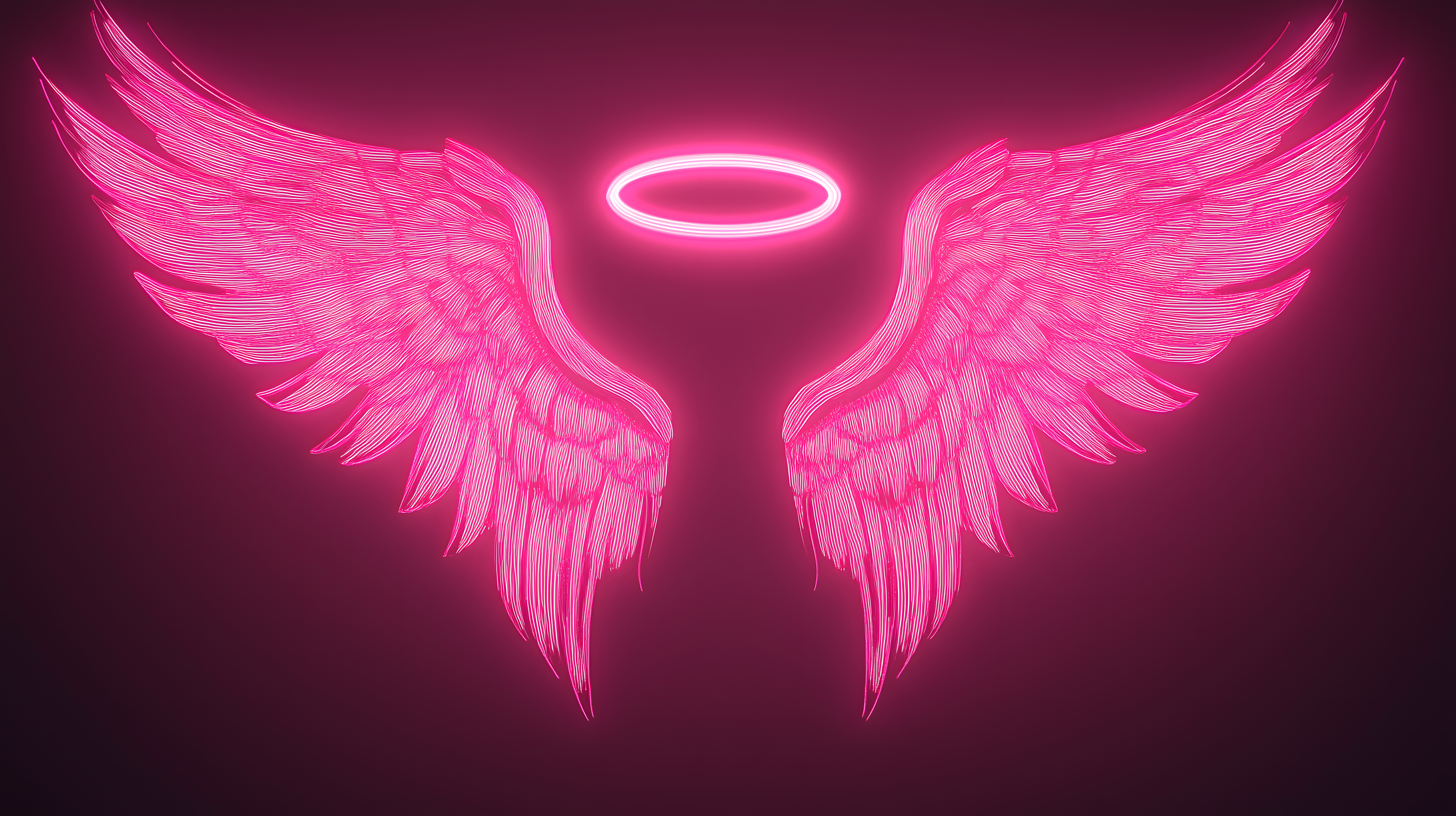 Dieses eindrucksvolle digitale Kunstwerk zeigt ein Paar leuchtend rosa Engelsfügel mit einem strahlenden Heiligenschein in der Mitte. Die detailreichen, fließenden Federkonturen und der intensive, neonähnliche Farbton erzeugen eine mystische, spirituelle Stimmung. Das Motiv könnte ideal als Hintergrund, Wallpaper oder Illustrationselement für Projekte mit metaphysischen, fantastischen oder religiösen Themen eingesetzt werden. Als hochauflösendes Stockfoto unter der Creative-Commons-Lizenz ist es kostenlos für private und kommerzielle Zwecke verfügbar.