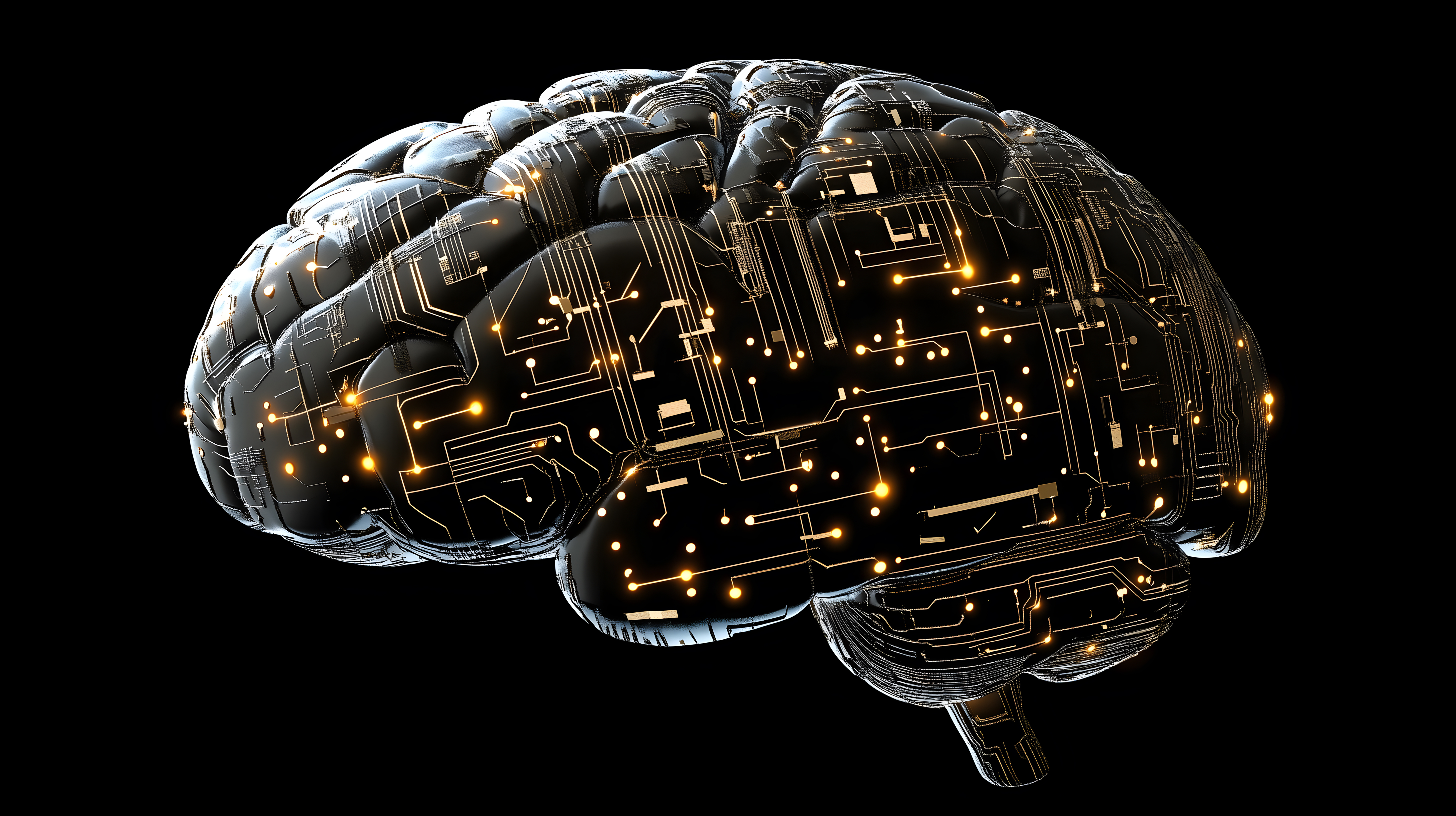 Futuristischer Digitalhirn-Chip in Schwarz und Gold von Marco Verch unter Creative Commons 2.0