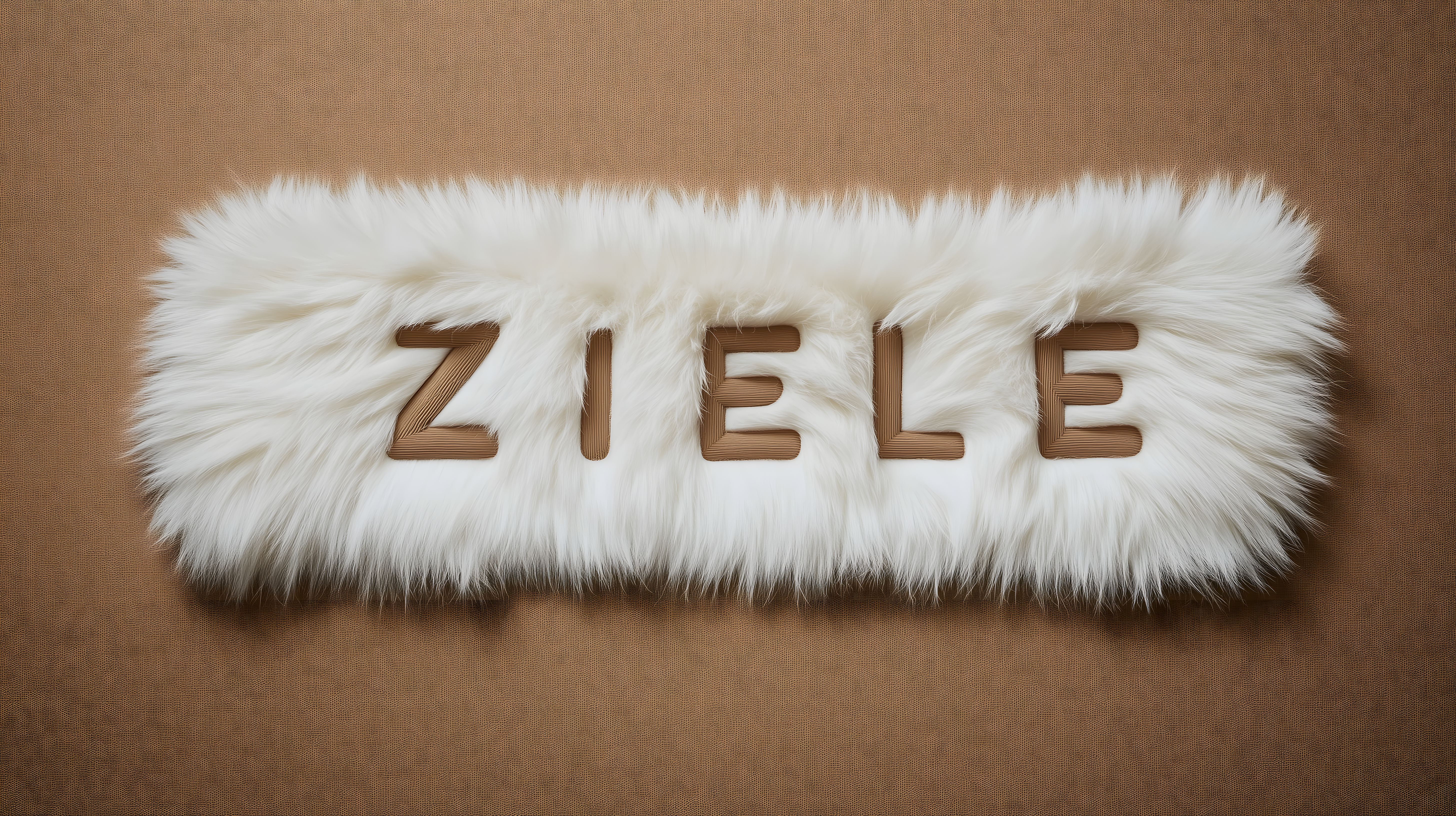 Das Bild zeigt ein flauschiges, helles Wort-Logo mit dem Begriff 'ZIELE' auf einem einfarbig braunen Hintergrund. Die Buchstaben sind in einem warmen, natürlichen Braunton gehalten und umgeben von weichen, weiß-cremefarbenen Fellsträhnen, die dem Ganzen eine weiche, gemütliche Ausstrahlung verleihen. Das Foto eignet sich perfekt als Hintergrundbild oder als Grafikelement für Blogbeiträge, Newsletter, Social-Media-Posts oder Werbematerialien rund um Zielsetzung, Motivation und Erfolgsmessung. Es ist als hochauflösendes, kostenloses Stockfoto unter Creative-Commons-Lizenz verfügbar.