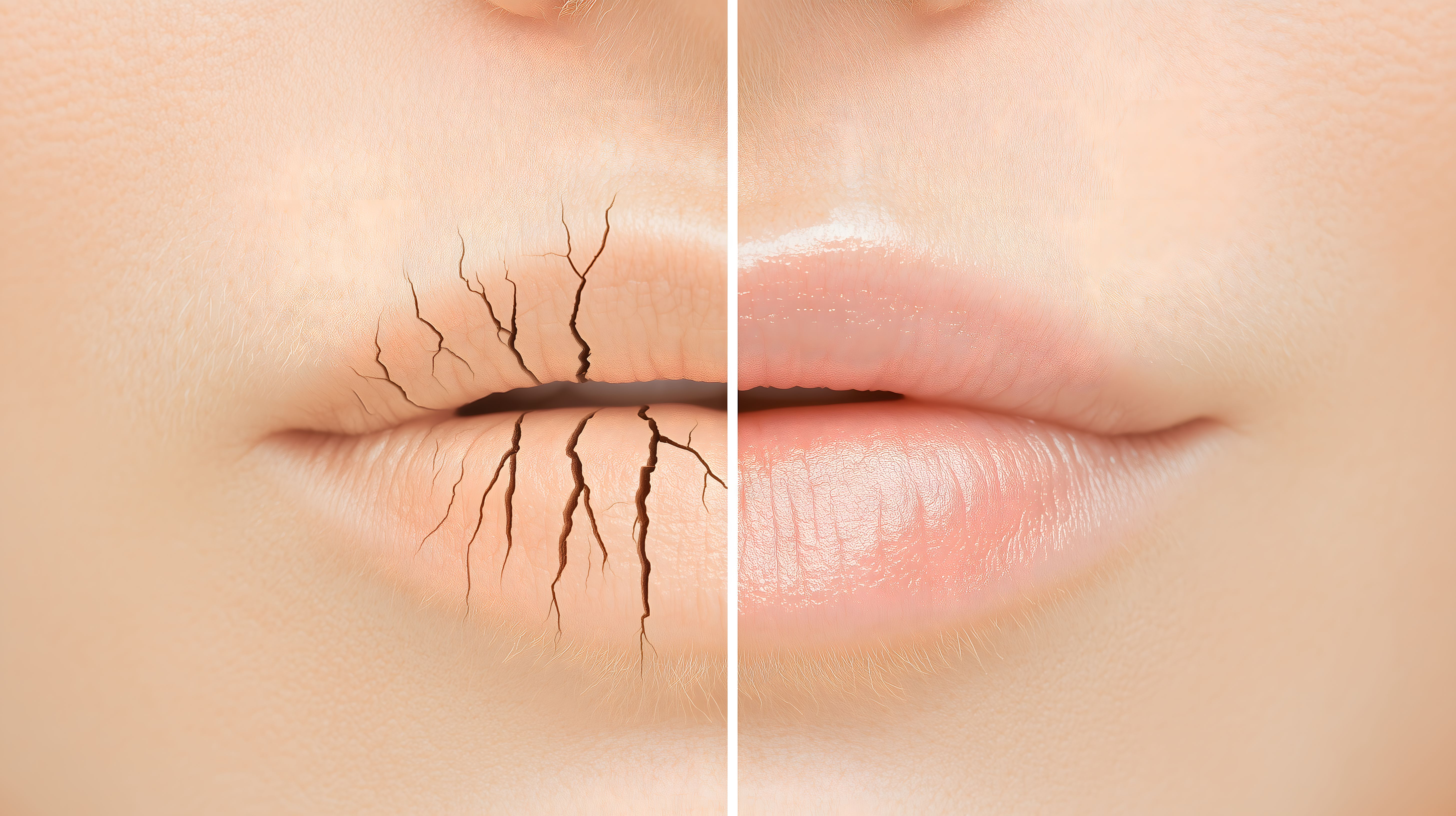 Das Bild zeigt einen Vergleich zwischen trockenen, rissigen Lippen und einer gepflegten, gesunden Lippe. Die trockenen Lippen weisen eine unebene, rissige Struktur auf, während die andere Seite glatte, feuchte Lippen zeigt. Dieses Vorher-Nachher-Bild kann für medizinische, kosmetische oder Gesundheitsthemen eingesetzt werden, um Probleme mit der Hautpflege sowie Lösungen dafür zu veranschaulichen. Es ist ein hoch aufgelöstes, kostenloses Stockfoto unter einer Creative-Commons-Lizenz, das sich ideal für Blog-Beiträge, Newsletter, Social-Media-Posts oder Werbekampagnen eignet.