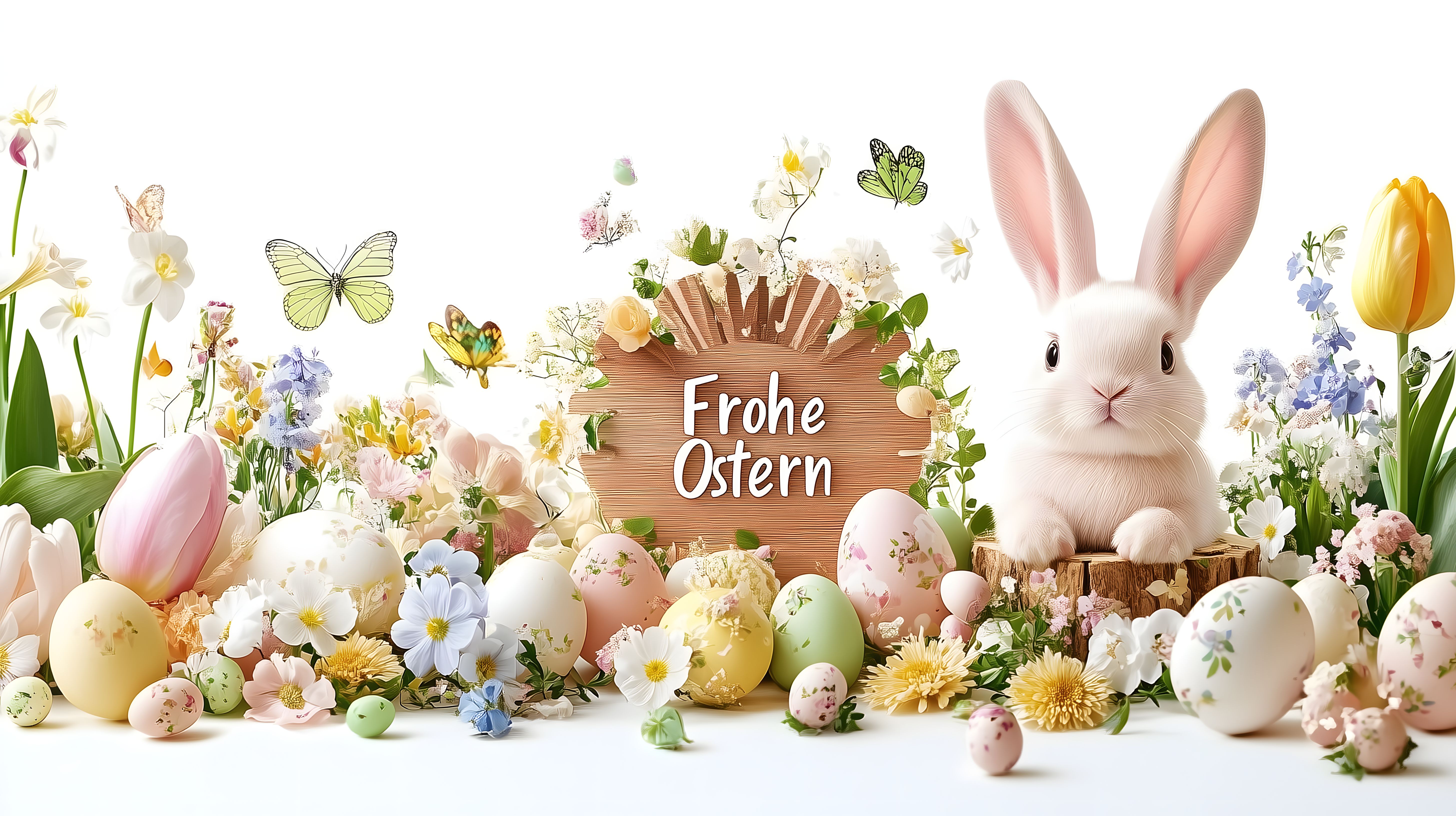 Das Bild zeigt eine bunte und fröhliche Osterdekoration mit einer Vielzahl an Frühlingsblumen, Hasen und Ostereiern. Der Fokus liegt auf einem hölzernen Schild mit der Aufschrift 'Frohe Ostern'. Die Komposition ist sehr natürlich und frisch, die Farben reichen von Pastelltönen bis hin zu kräftigem Gelb und Grün. Dieses Foto eignet sich hervorragend für den Einsatz in Blogbeiträgen, Newsletter-Layouts, Social-Media-Posts oder Werbekampagnen rund um das Thema Ostern und Frühling. Es ist ein kostenloses Stockfoto in hoher Auflösung und kann unter der Creative-Commons-Lizenz verwendet werden.