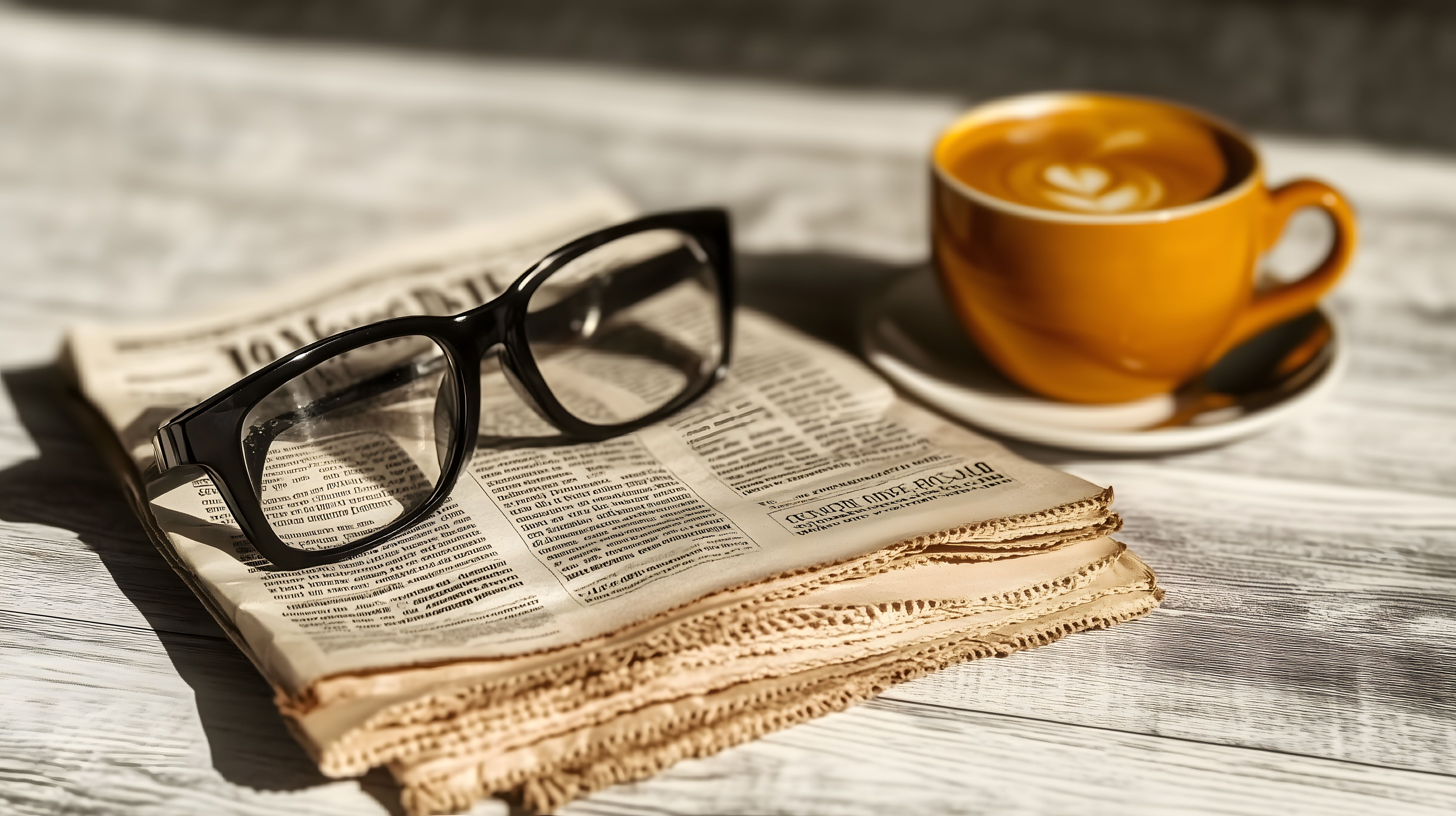 Dieses Foto zeigt eine gemütliche Büroatmosphäre mit einem Kaffee in einer orangefarbenen Tasse und einer Brille, die auf einer Zeitung liegen. Der Fokus liegt auf den Details wie den Textzeilen der Zeitung und dem kunstvollen Schaumkopf des Cappuccinos, die eine ruhige, konzentrierte Stimmung vermitteln. Die Kombination aus Kaffee, Brille und Zeitung lässt auf einen kurzen Moment der Entspannung und Reflexion zwischen Arbeitsphasen schließen. Das Foto eignet sich hervorragend als kostenloses Stockfoto für Blogs, Newsletter oder Social-Media-Posts, die eine gemütliche Büroatmosphäre oder das Thema 'Arbeiten im Büro' aufgreifen möchten. Die hochwertige Auflösung und Creative-Commons-Lizenz ermöglichen eine flexible Nutzung des Bildes.