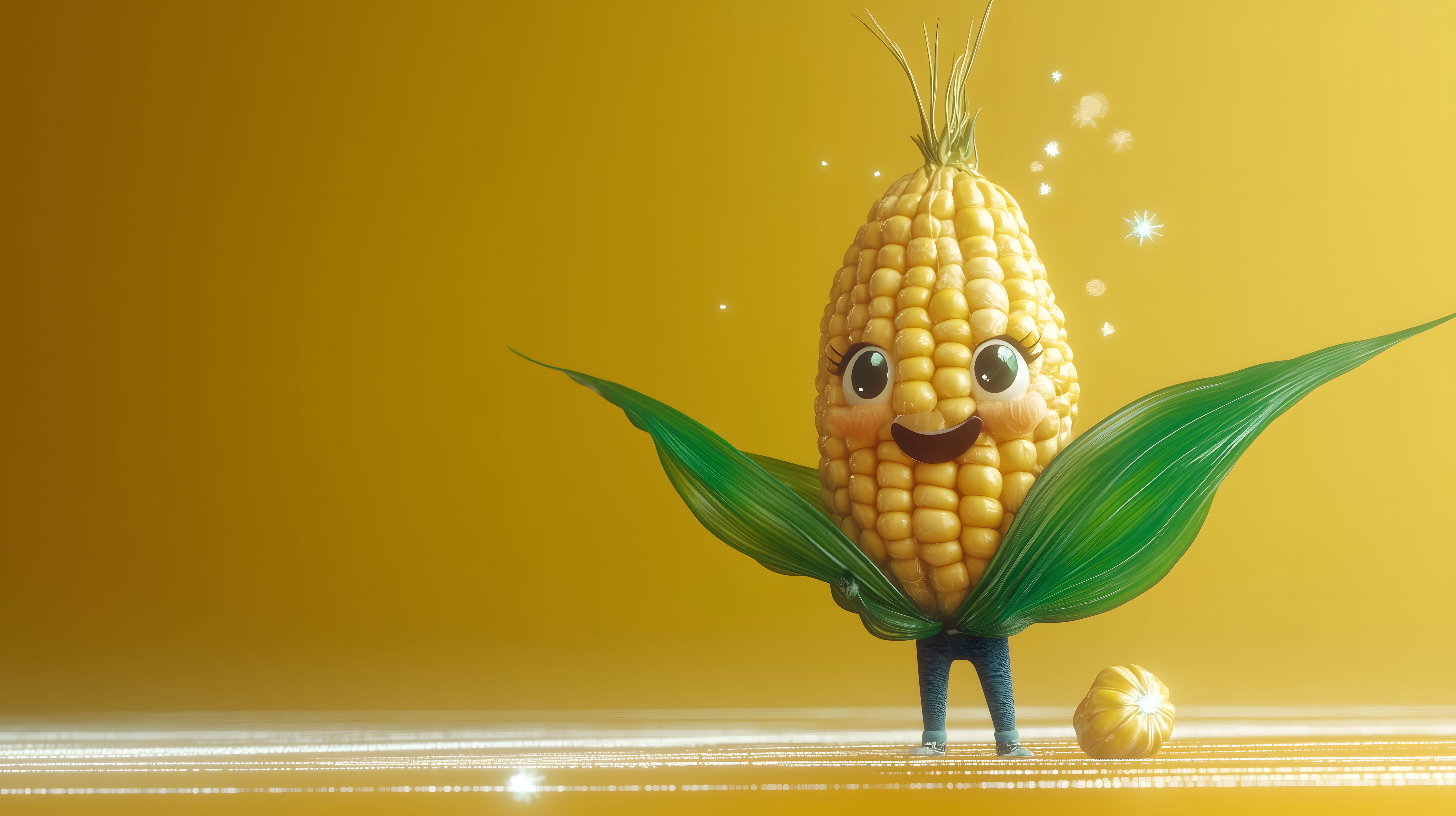 Dieses fröhliche 3D-Cartoon-Maskottchen eines Maiskolbens strahlt in leuchtenden gelben und grünen Farben. Mit seinen großen Augen und seinem strahlenden Lächeln vermittelt der Maiskornmann eine positive und spielerische Stimmung. Dieses Stockfoto eignet sich hervorragend für den Einsatz in Werbung, Social-Media-Posts, Newslettern oder als Geschenkidee. Es ist in hoher Auflösung und unter einer Creative-Commons-Lizenz frei verfügbar.