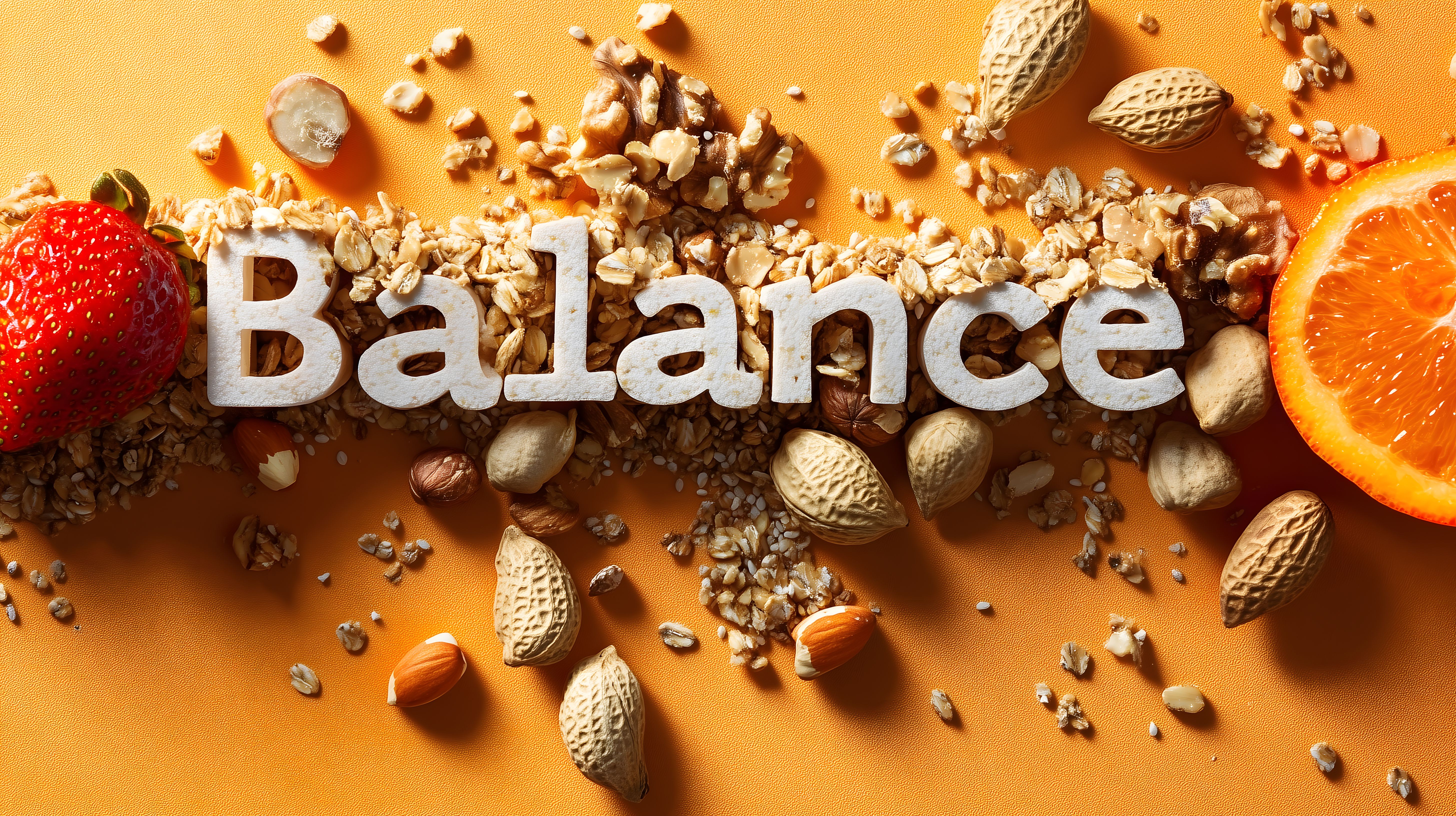 Dieses Foto zeigt ein ausgewogenes Ernährungskonzept mit einer Mischung aus verschiedenen Nüssen und Obststücken, die auf einem orangefarbenen Hintergrund platziert sind. Die Komposition betont die Balance und Harmonie der natürlichen Zutaten, die für einen gesunden und ausgewogenen Lebensstil stehen. Das Bild könnte für Blogbeiträge, Social-Media-Posts oder Werbematerialien zu Themen wie Ernährung, Wellness oder Fitness verwendet werden. Als kostenloses Stockfoto in hoher Auflösung und unter einer Creative-Commons-Lizenz ist es vielseitig einsetzbar.
