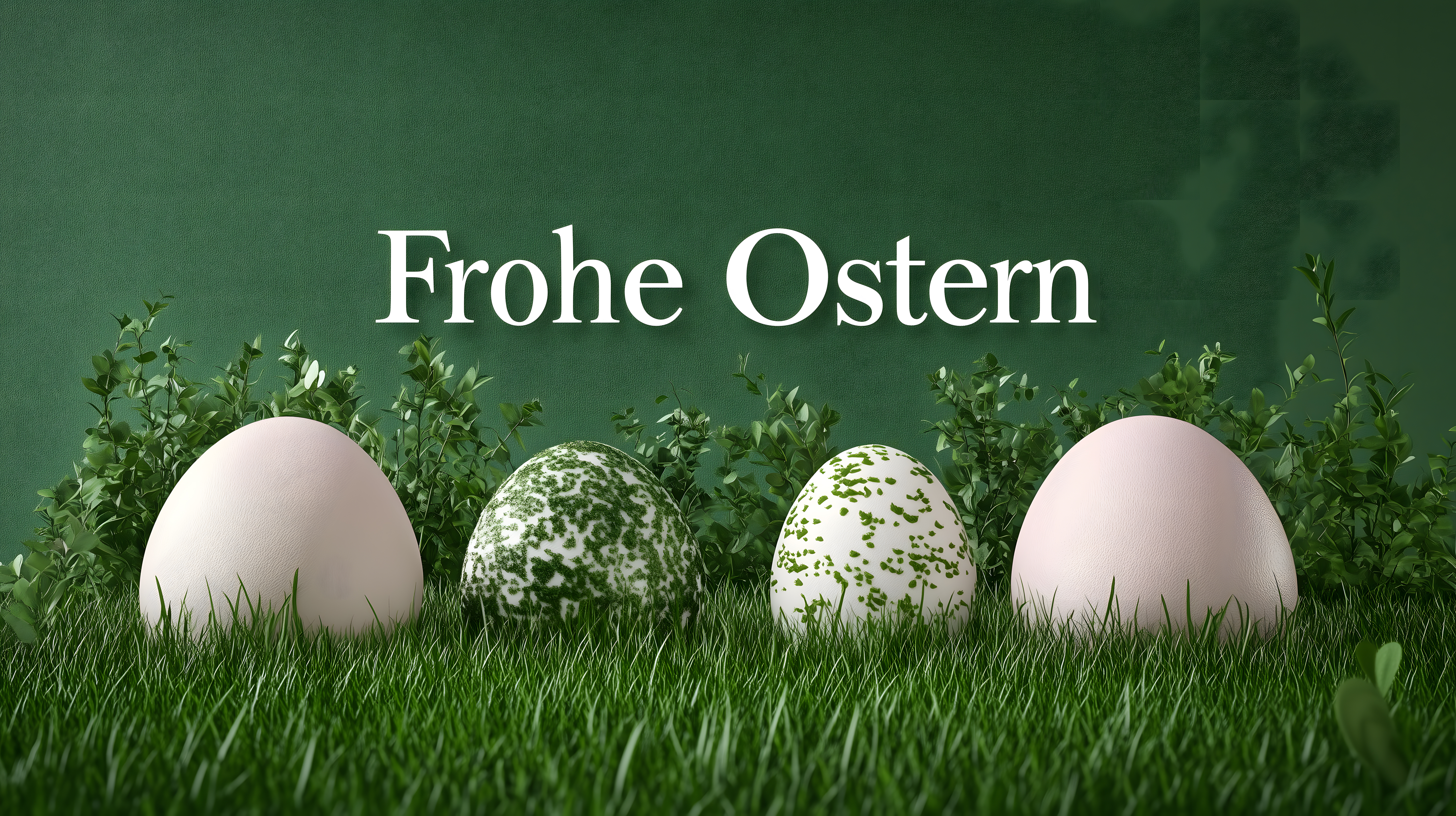Dieses attraktive Stockfoto zeigt eine dekorative Osterkomposition vor einem stimmungsvollen grünen Hintergrund. Im Vordergrund befinden sich drei Ostereier - zwei in klassischem Weiß und eines mit grünem Muster. Die Eier sind umgeben von frischem, saftigem Grün, das den Frühling und die Leichtigkeit der Osterzeit symbolisiert. Die Perspektive ist großzügig gewählt, sodass das Motiv optisch ansprechend und harmonisch wirkt. Dieses hochaufgelöste Stockfoto eignet sich ideal für Verwendungen in Blogs, Newslettern, Social-Media-Postings und Werbematerialien rund um Ostern. Es steht unter einer Creative-Commons-Lizenz kostenfrei zur Verfügung.