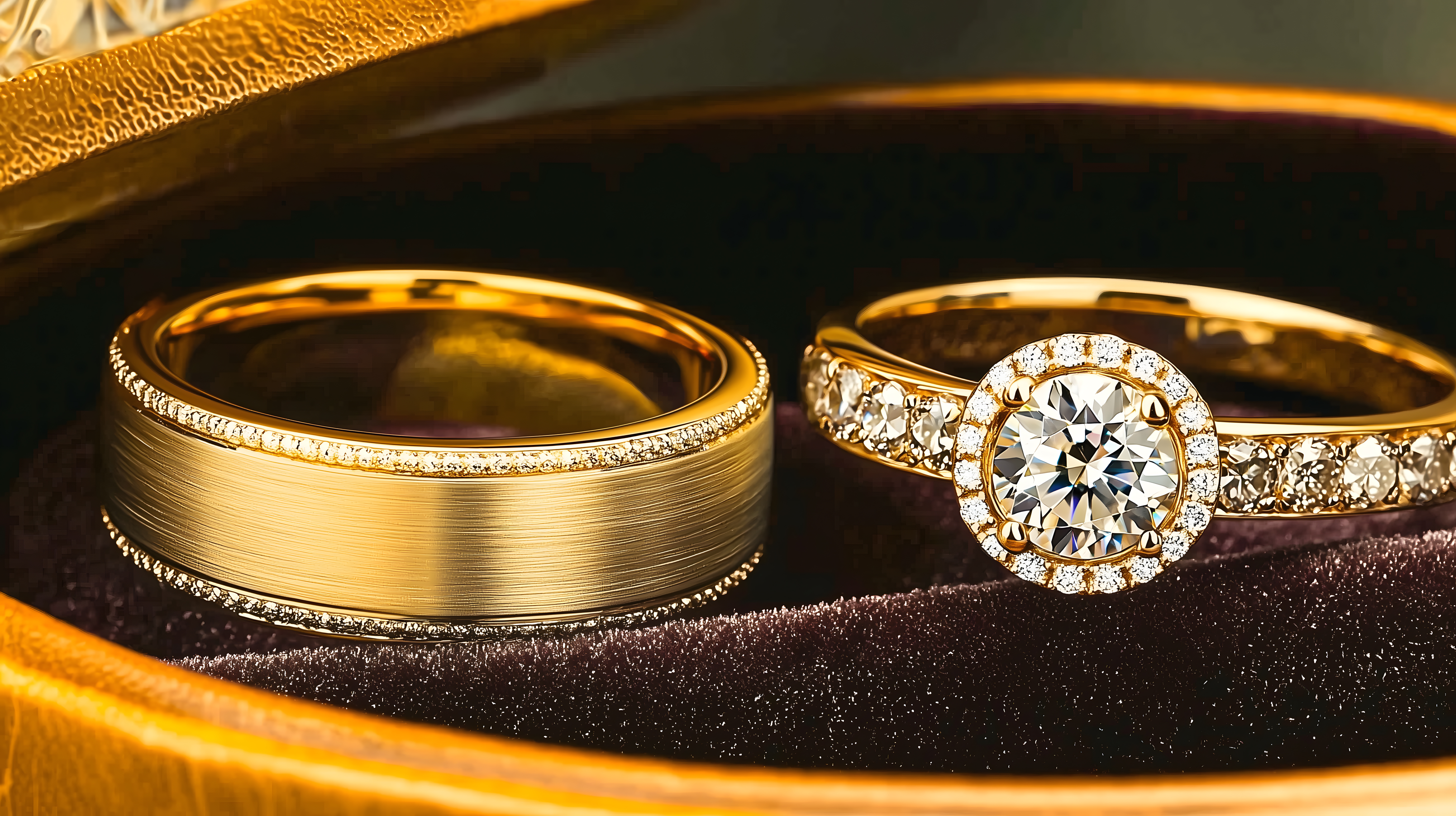 Dieses hochwertige Stockfoto zeigt zwei goldfarbene Eheringe in einer edlen Schmuckschatulle. Die Ringe sind mit funkelnden Diamanten verziert und stehen auf einem samtigen schwarzen Untergrund. Das Bild strahlt Eleganz, Luxus und Romantik aus und ist perfekt für die Verwendung in Artikeln oder Werbekampagnen rund um Themen wie Hochzeit, Verlobung, Jubiläum oder Heiraten. Das Foto ist in hoher Auflösung und unter einer kostenlosen Creative-Commons-Lizenz verfügbar, sodass es vielfältig und ohne Restriktionen eingesetzt werden kann.