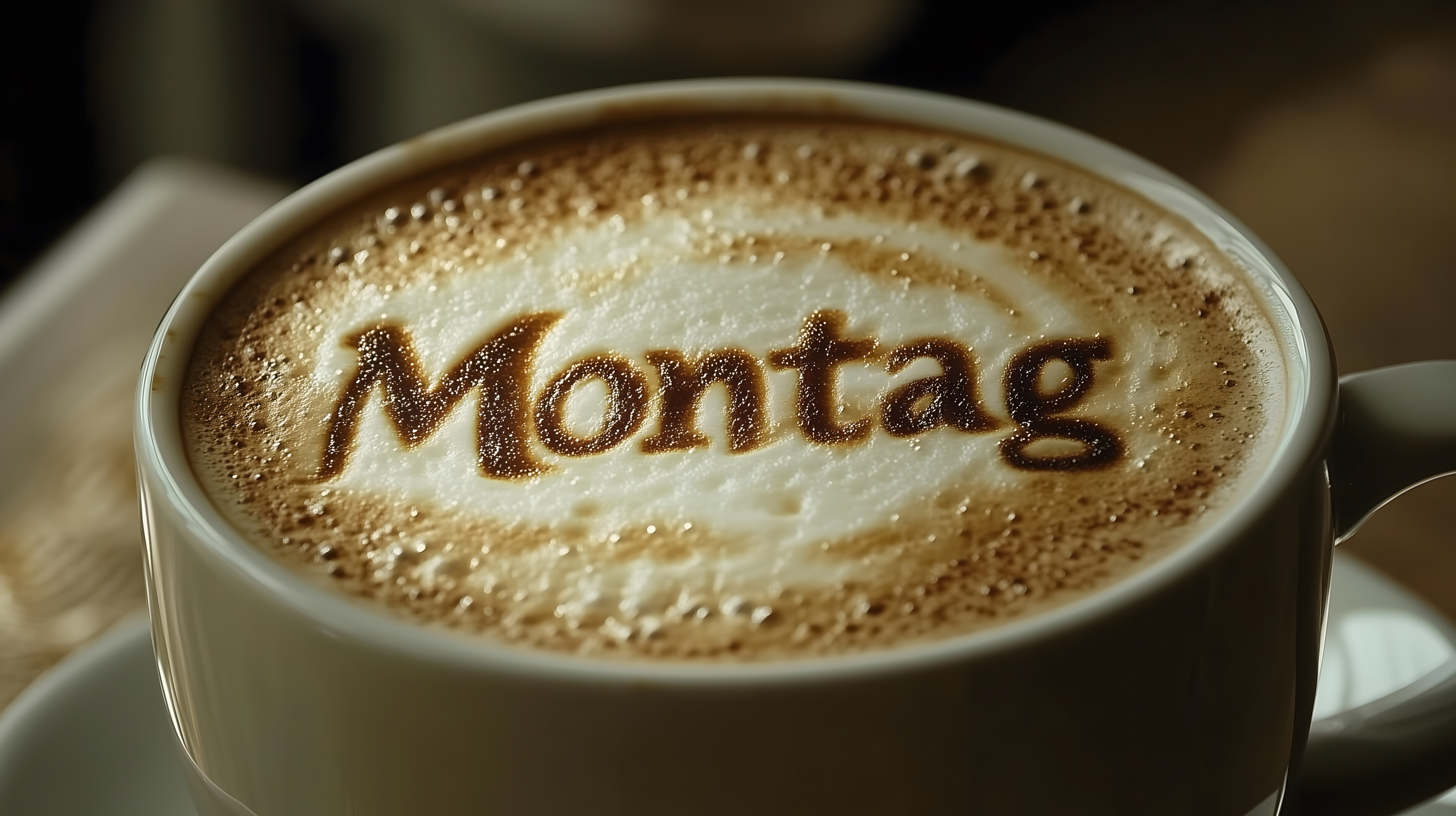 Dieses Foto zeigt eine Tasse Kaffee mit einem künstlerischen Kaffee-Crema-Muster, das das Wort 'Montag' darstellt. Der Fokus liegt auf der Tasse, die vor einem leicht unscharfen, dunklen Hintergrund platziert ist. Die Farbpalette ist vorwiegend in Braun- und Beigetönen gehalten, was dem Bild einen rustikalen, gemütlichen Charakter verleiht. Das Foto eignet sich hervorragend als kostenloses Stockfoto für Blogs, Newsletter, Social-Media-Beiträge oder Werbematerialien, die einen Bezug zur Kaffeekultur, zum Start in die Woche oder zu Motivationsthemen haben. Die hochauflösende Datei steht unter einer Creative-Commons-Lizenz zur Verfügung.