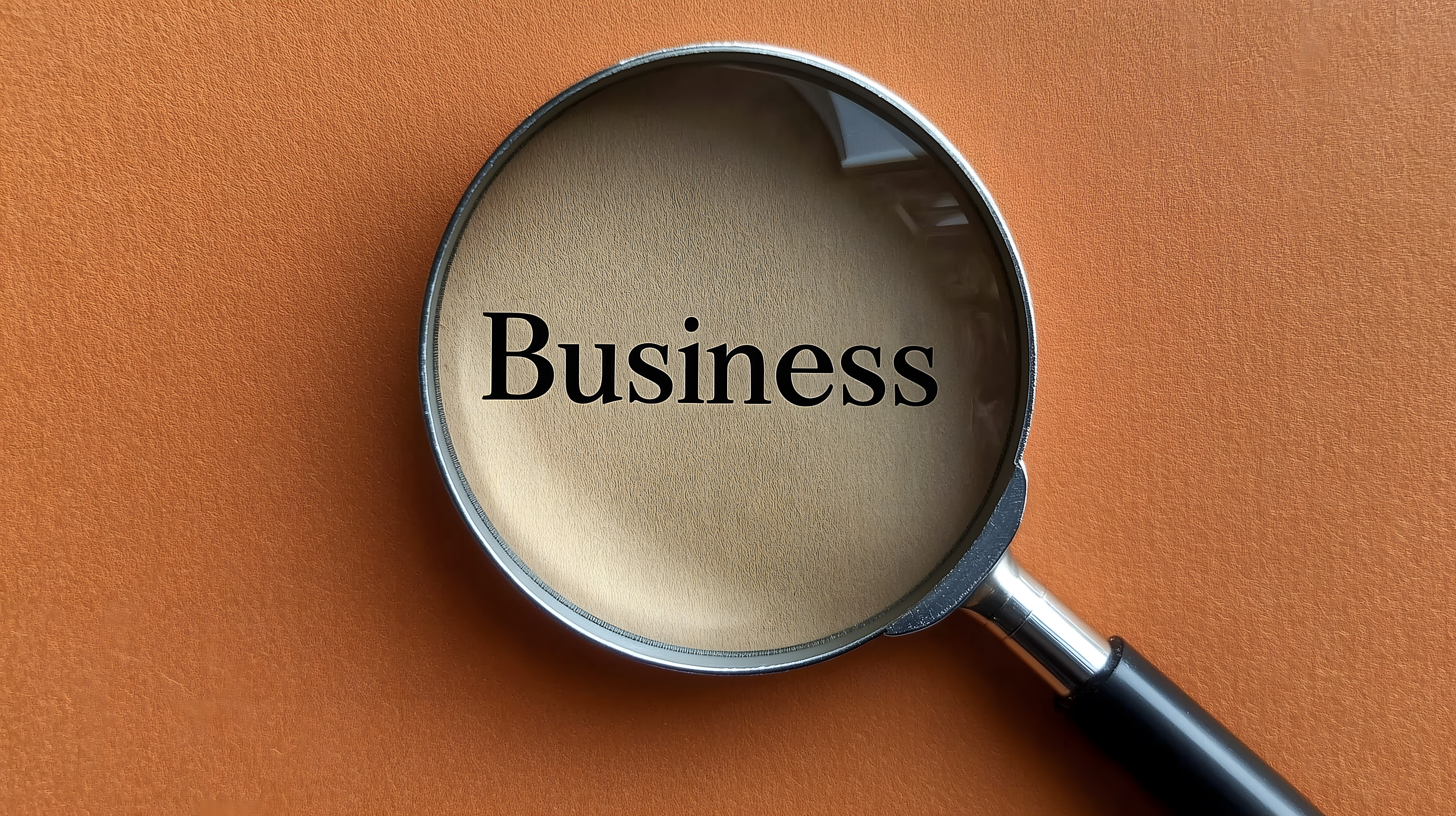 Das Bild zeigt eine große Lupe, die auf das Wort 'Business' gerichtet ist. Der Hintergrund ist in einem kräftigen Orange gehalten, was dem Bild eine moderne und minimalistisch-ästhetische Optik verleiht. Diese Aufnahme eignet sich hervorragend als kostenloses Stockfoto für verschiedene Verwendungszwecke in Blogs, Newslettern, Social-Media-Kanälen oder Werbematerialien rund um das Thema Geschäft, Unternehmertum und unternehmerische Analyse. Die hochauflösende Datei steht unter einer Creative-Commons-Lizenz zur Verfügung.