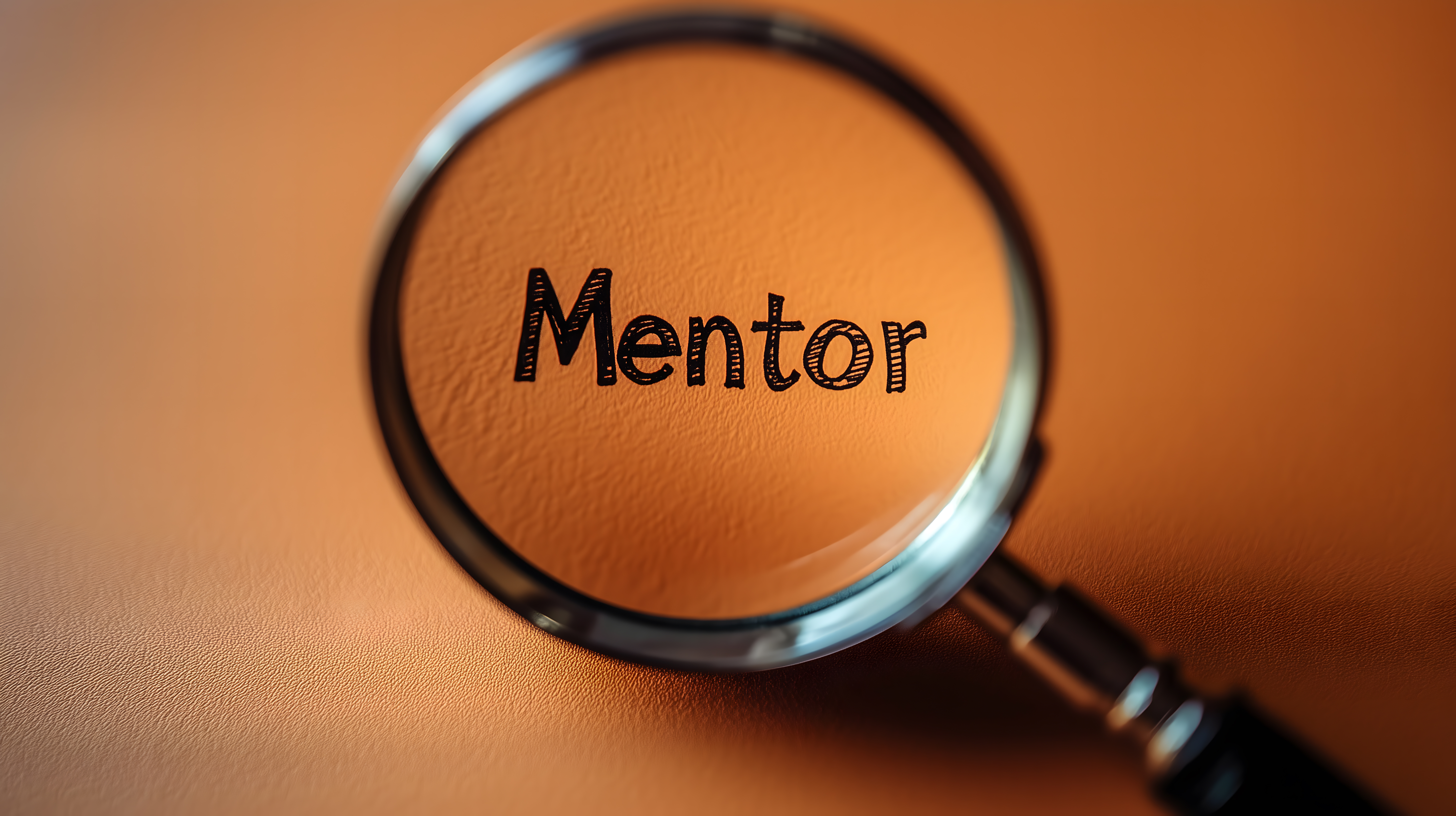 Das Bild zeigt eine Nahaufnahme einer Lupe, durch die das Wort 'Mentor' deutlich zu erkennen ist. Der orangefarbene Hintergrund lässt den Text stark hervortreten und lenkt die Aufmerksamkeit gezielt auf diesen. Das Bild vermittelt das Konzept von Mentoring, Beratung und Förderung, bei dem ein erfahrener Mentor einen Lernenden unterstützt und inspiriert. Dieses Stockfoto eignet sich hervorragend für Blog-Beiträge, Newsletter oder Social-Media-Postings rund um die Themen Weiterbildung, persönliche Entwicklung und Führung. Es ist in hoher Auflösung verfügbar und kann kostenfrei unter einer Creative-Commons-Lizenz verwendet werden.