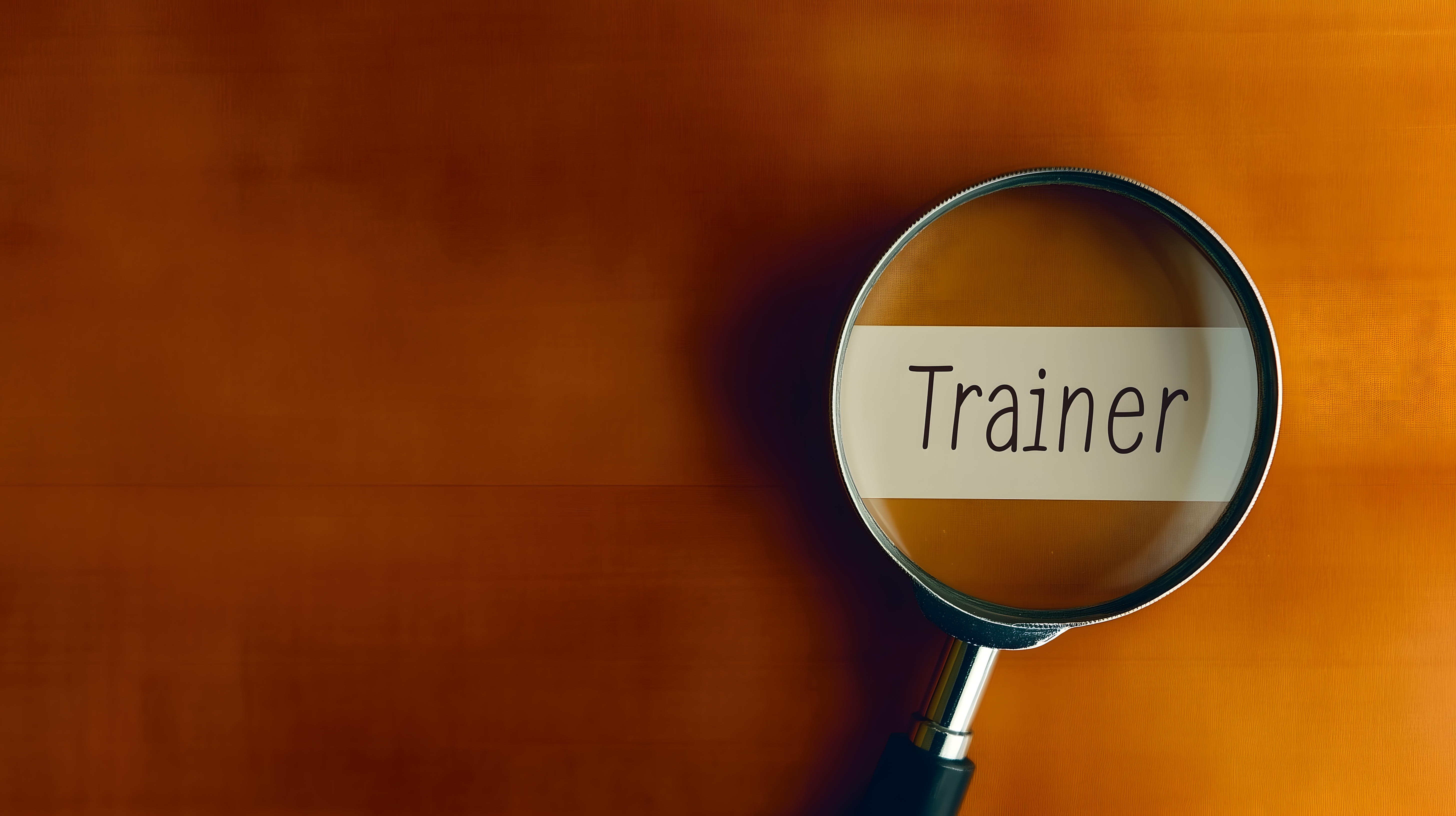 Das Bild zeigt einen Ausschnitt, auf dem eine Lupe oder ein Vergrößerungsglas das Wort 'Trainer' in den Fokus rückt. Der Hintergrund ist in warmen, orangen Tönen gehalten und verleiht dem Bild eine kontraststarke, fast abstrakte Ästhetik. Das Foto ist ideal für den Einsatz in Blogbeiträgen, Newslettern oder Social-Media-Posts rund um Themen wie Personalentwicklung, Weiterbildung oder Beratung. Als kostenloses Stockfoto in hoher Auflösung und unter Creative-Commons-Lizenz eignet es sich hervorragend für eine Vielzahl von Anwendungen.