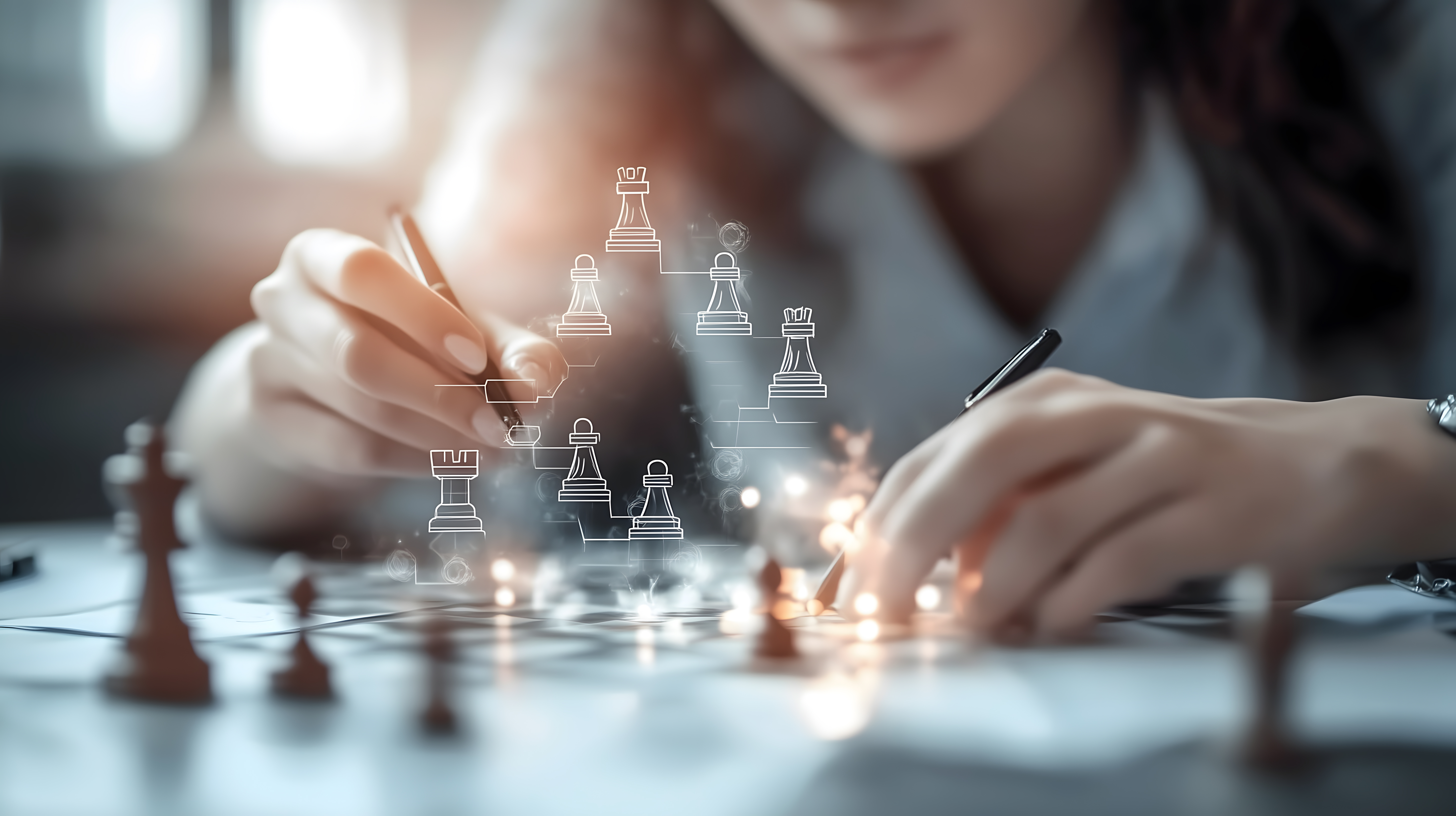 Dieses Bild zeigt einen Menschen, der an einem Schreibtisch sitzt und eine strategische Planung unter Verwendung von Schachfiguren und digitalen Diagrammen durchführt. Die Perspektive ist auf die Hände der Person fokussiert, die konzentriert mit den Schachfiguren arbeitet. Die Szene vermittelt einen Eindruck von Geschäftsstrategie, Entscheidungsfindung und der Nutzung digitaler Werkzeuge. Dieses Stockfoto in hoher Auflösung eignet sich hervorragend für den Einsatz in Blogs, Newslettern, Social-Media-Kanälen oder Werbekampagnen, die sich mit Themen wie Unternehmensführung, strategischer Planung oder Innovation befassen. Das Bild steht unter einer Creative-Commons-Lizenz und kann daher kostenlos für verschiedene Zwecke genutzt werden.