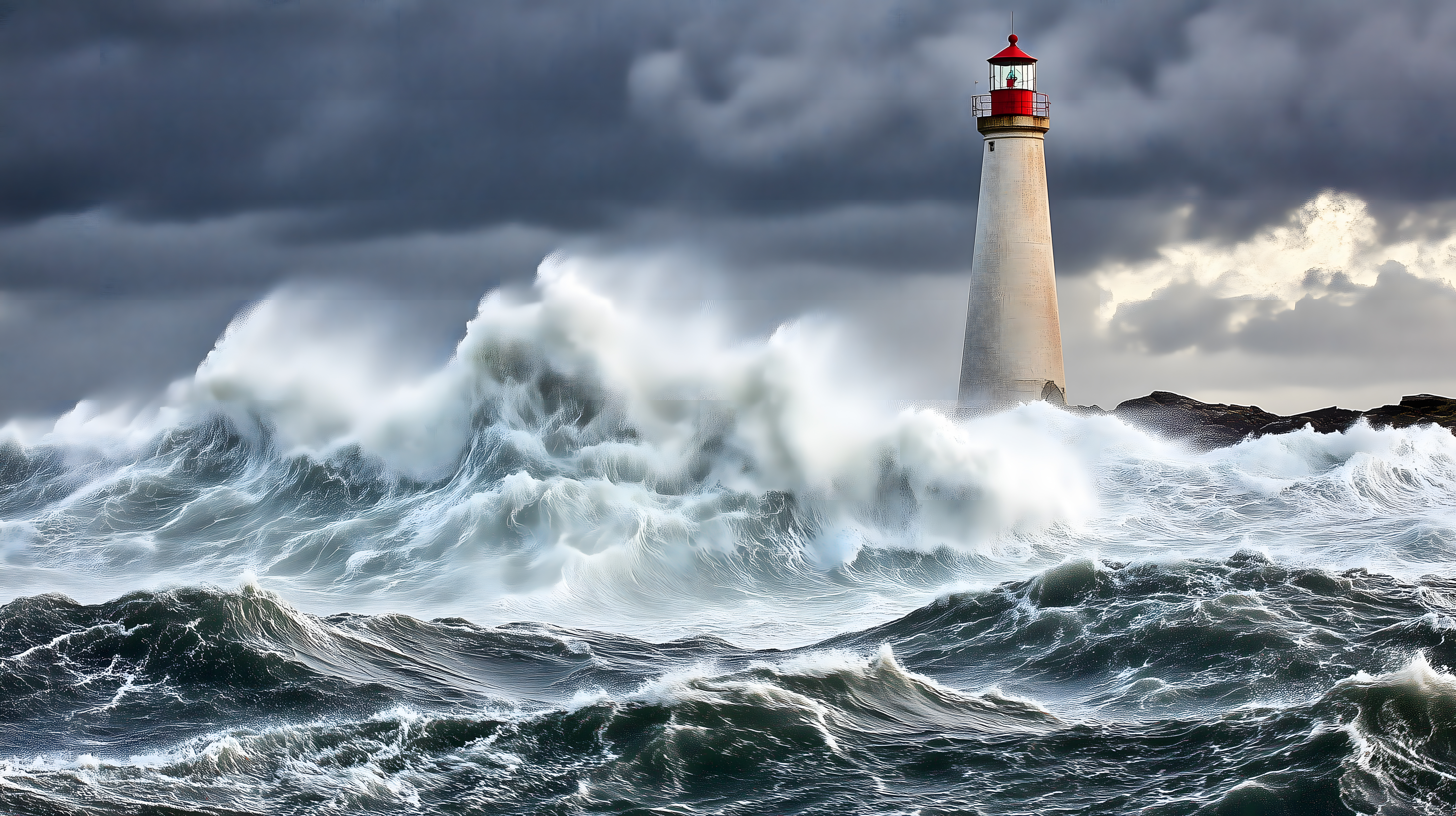 Dieses beeindruckende Foto zeigt eine stürmische Szenerie an der Küste. Im Vordergrund sind gewaltige, schäumende Wellen zu sehen, die sich an den Felsen brechen. Im Hintergrund ragt ein einsamer Leuchtturm in die Höhe, umgeben von dramatischen, dunklen Wolken. Die Komposition und die Farbgebung verleihen dem Bild eine bedrohliche und majestätische Atmosphäre. Es ist eine kraftvolle Darstellung der Naturgewalt und könnte hervorragend in Blogs, Newslettern oder Werbekampagnen eingesetzt werden, die ein emotionales, dramatisches Motiv benötigen. Dieses hochauflösende, kostenlose Stockfoto steht unter einer Creative-Commons-Lizenz zur Verfügung.