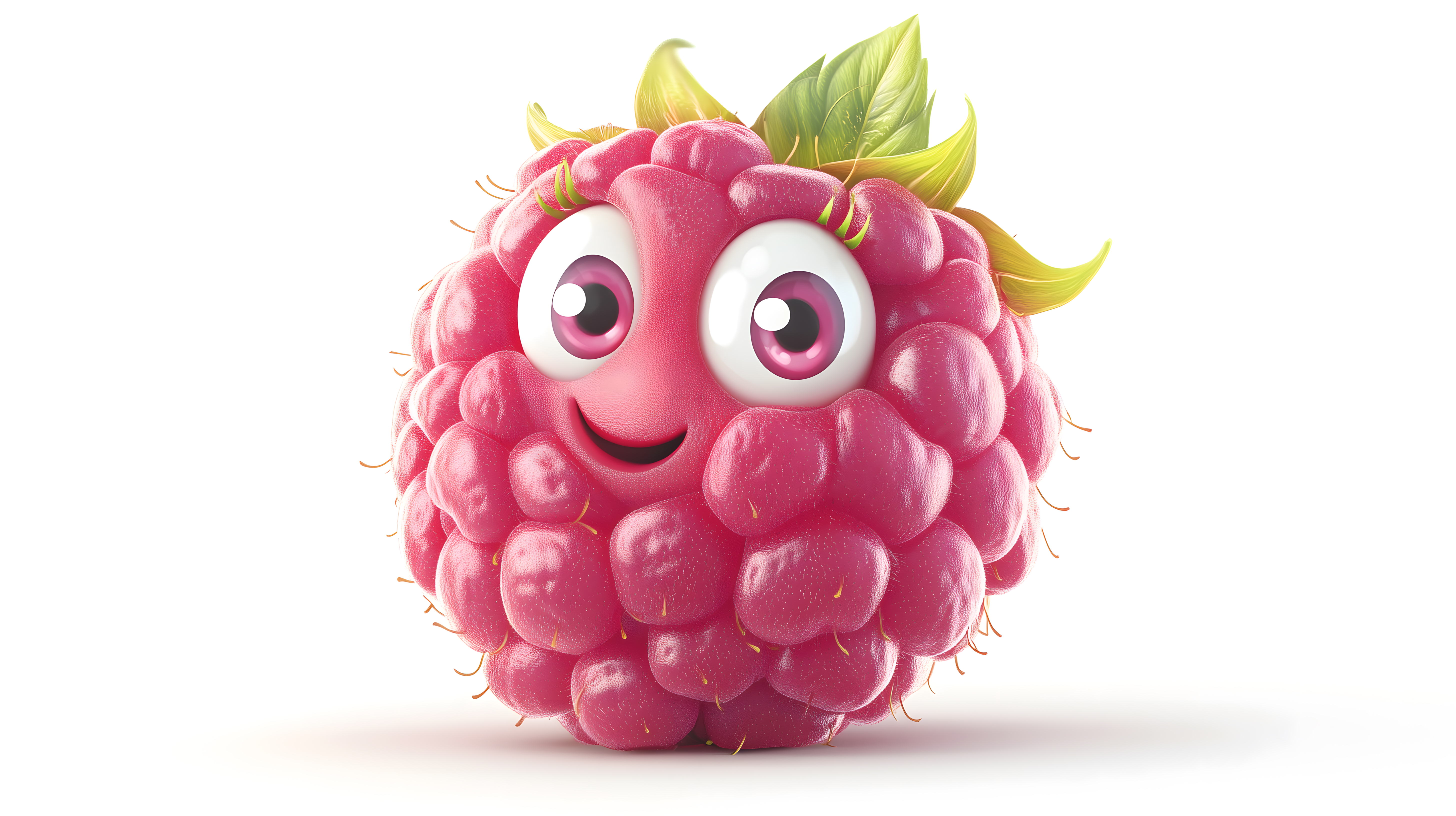 Dieses fröhliche Cartoon-Bild zeigt eine leuchtend rosa Himbeere mit großen, freundlichen Augen und einem breiten Lächeln. Die Frucht ist detailreich und realistisch gezeichnet, mit zarten grünen Blättern auf der Spitze. Das Bild hat einen verspielten, einladenden Charakter und könnte sich gut für Lebensmittelwerbung, Foodblogs oder Kinderbücher eignen. Als hochauflösendes Stockfoto ist es kostenfrei unter einer Creative-Commons-Lizenz verfügbar.