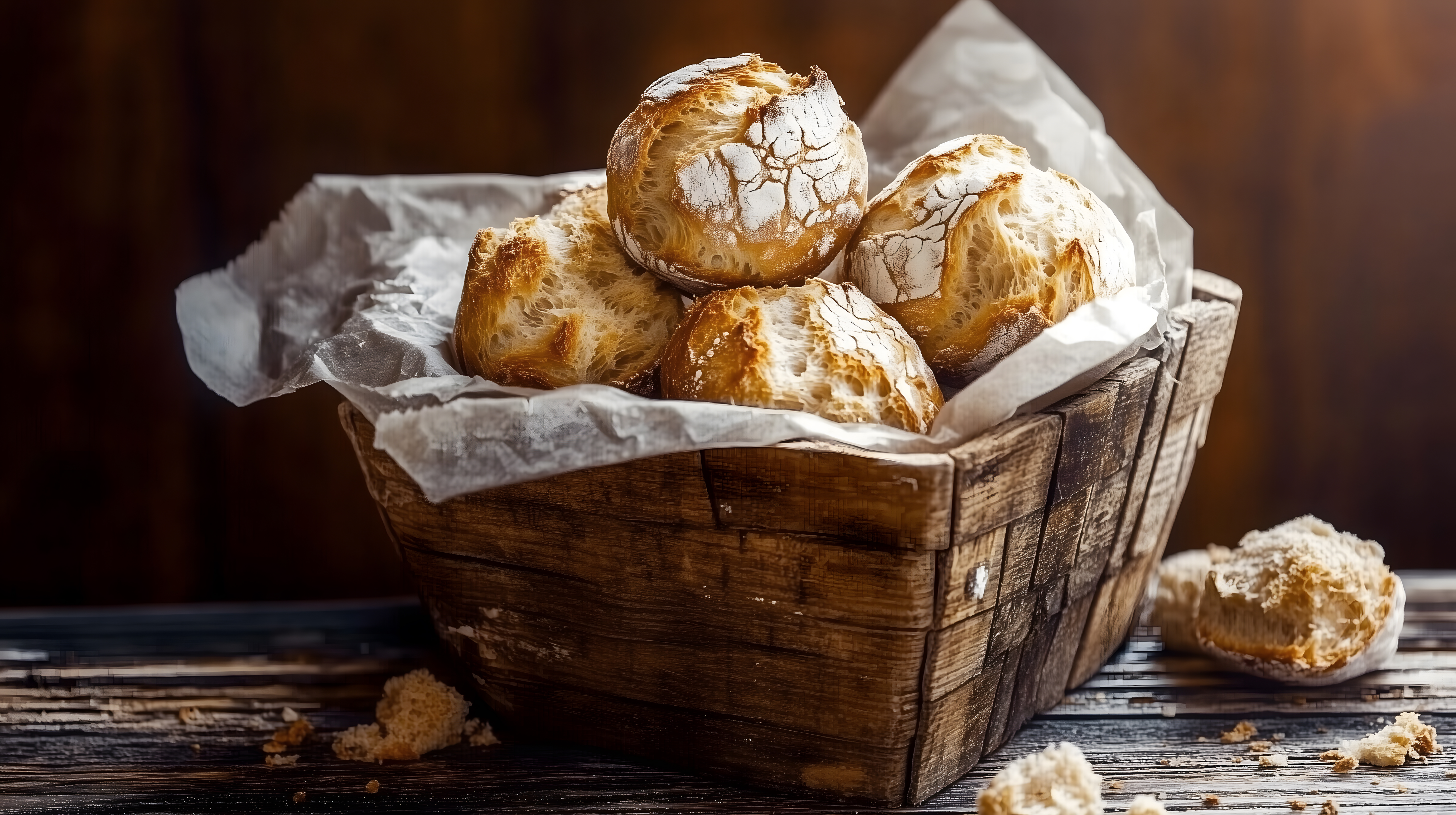 Dieses Foto zeigt einen rustikalen Korb, der mit frisch gebackenen Brötchen gefüllt ist. Die Brötchen haben eine knusprige, golden-braune Kruste und eine leicht zerzauste Optik, die auf ihre handwerkliche Herstellung hinweist. Der Korb selbst ist aus robustem, natürlichem Holz gefertigt und verleiht dem Motiv einen ländlichen, gemütlichen Charakter. Das Foto eignet sich hervorragend für die Verwendung in Blogs, Newslettern oder Social-Media-Beiträgen rund um das Thema Bäckerei, Frühstück oder Lebensmittelfotos. Als kostenloses Stockfoto in hoher Auflösung und unter einer Creative-Commons-Lizenz kann es vielfältig eingesetzt werden.