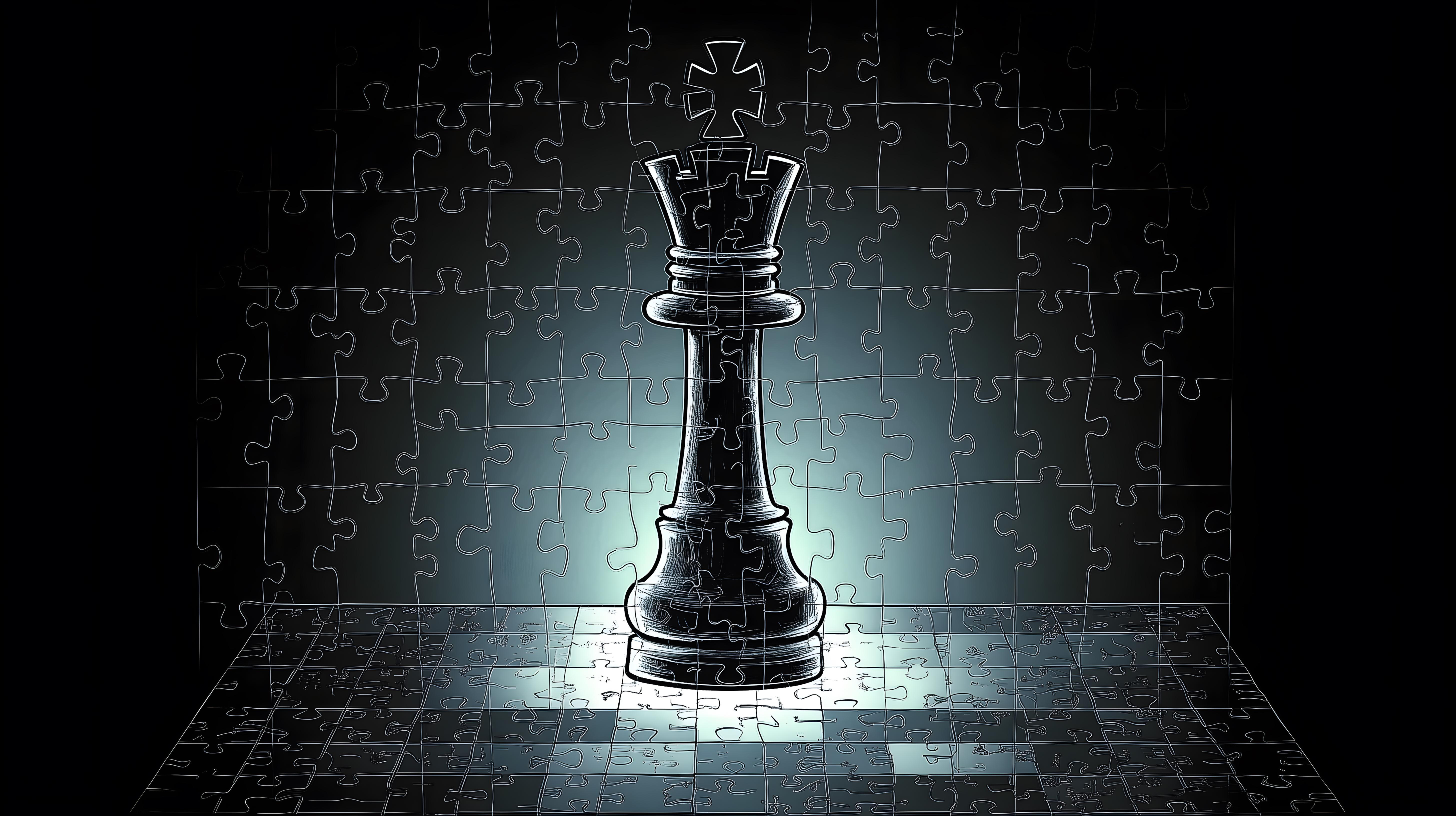 Dieses Stockfoto zeigt eine Schachfigur des Königs, platziert auf einem minimalistischen Puzzlebrett. Die Darstellung ist stark kontrastreich, mit einer monochrome Farbgebung in Grautönen. Die Komposition hebt die Königsfigur als zentrales Element hervor, umgeben von einem abstrakten, grauen Hintergrund aus einzelnen Puzzleteilen. Dieses Bild vermittelt Konzepte wie Strategie, Herausforderung, Führung und Entscheidungsfreude. Es kann vielseitig eingesetzt werden, zum Beispiel für Blogs, Newsletter, Social-Media-Beiträge oder Werbematerial zu Themen wie Geschäftsführung, Wettbewerb oder Erfolg. Das hochauflösende Stockfoto ist kostenfrei und unter einer Creative-Commons-Lizenz verfügbar.