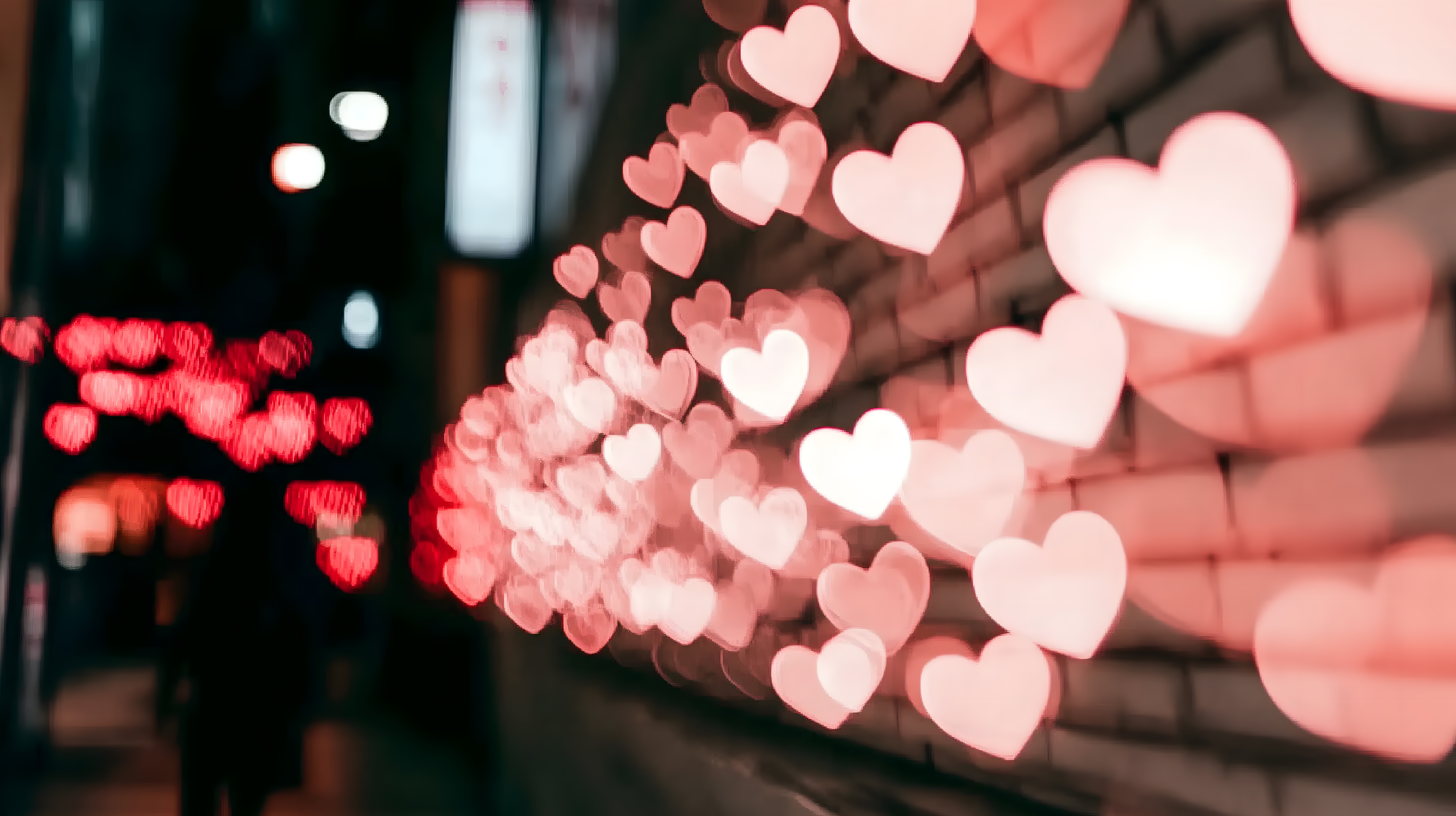 Dieses Foto zeigt einen verschwommenen Hintergrund voller leuchtender Herzen. Die Herzen sind rot und rosa und erscheinen als Bokeh-Effekt, der eine romantische und verträumte Atmosphäre schafft. Der Fokus liegt auf den unscharf dargestellten Lichtern, die in der Dunkelheit der Stadt zu sehen sind. Dieses Bild eignet sich hervorragend als Hintergrund oder Textur für Blogs, Newsletter, Social-Media-Posts oder Werbematerialien rund um Themen wie Liebe, Romantik, Hochzeit oder Valentinstag. Das hochauflösende Foto steht unter einer kostenlosen Creative-Commons-Lizenz zur Verfügung.