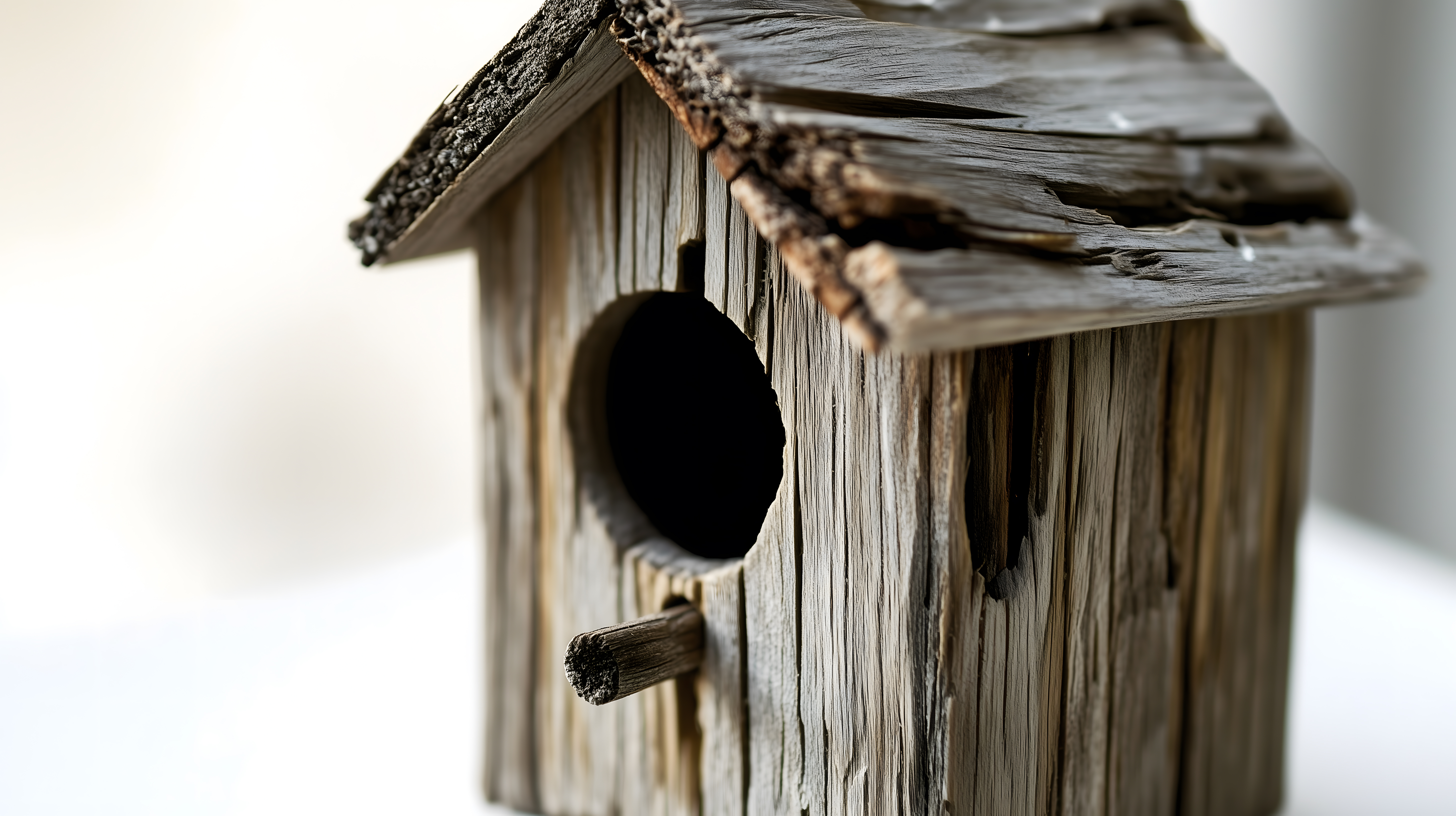Rustikaler, witterungsgezeichneter Nistkasten mit Loch von Marco Verch unter Creative Commons 2.0