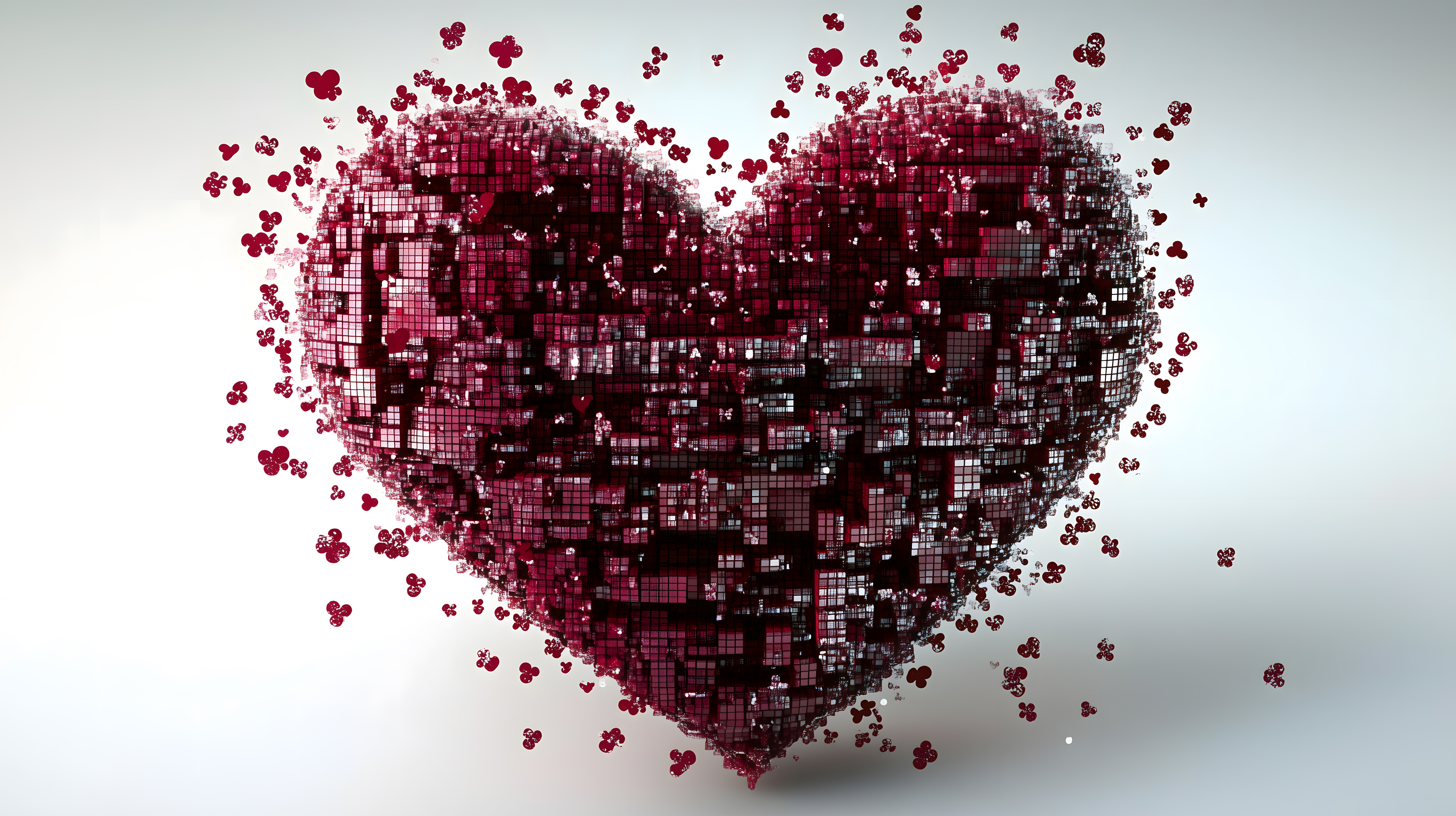 Dieses digitale Kunstwerk zeigt ein detailliertes, rotes Herz, das aus unzähligen, kleinen Pixeln zusammengesetzt ist. Der Herzumriss ist klar erkennbar, während die Einzelpixel einen besonderen, grafischen Effekt erzeugen. Der Kontrast zwischen dem leuchtenden Rot und dem weißen Hintergrund verleiht dem Motiv eine starke, visuelle Präsenz. Diese einzigartige Illustration eignet sich hervorragend als emotionales, kostenloses Stockfoto für Valentinstags-Grußkarten, Liebesgeschenke, Hochzeitseinladungen oder andere romantische Zwecke. Die hochauflösende Datei ist unter einer Creative-Commons-Lizenz frei nutzbar.