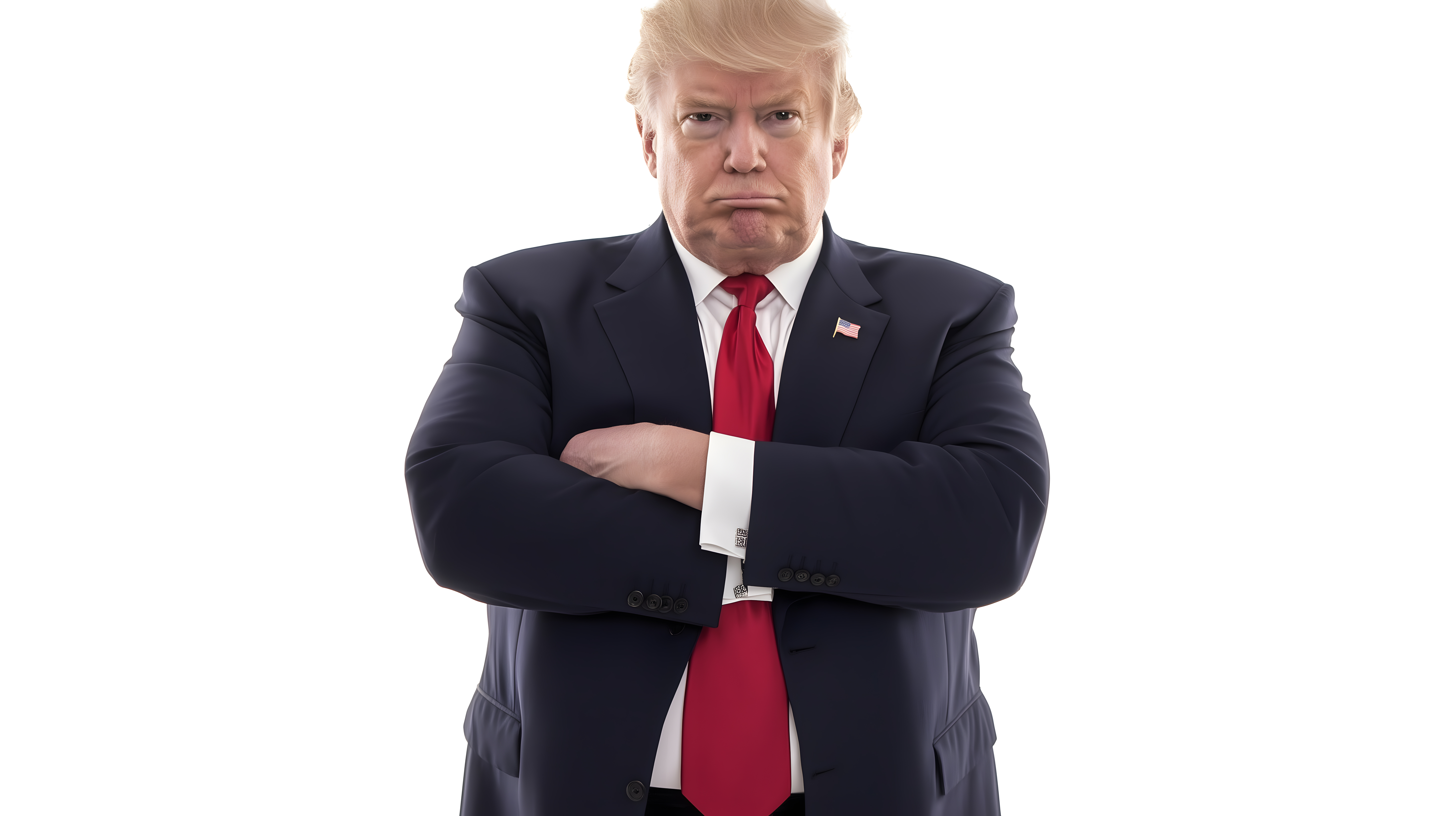 Das Bild zeigt ein Porträt von Donald Trump, dem 45. Präsidenten der Vereinigten Staaten von Amerika. Er trägt einen dunklen Anzug mit roter Krawatte und blickt mit ernstem, nachdenklichem Gesichtsausdruck direkt in die Kamera. Der neutrale, weiße Hintergrund unterstreicht den offiziellen und autoritären Charakter des Motivs. Das Foto eignet sich hervorragend als Stockbild für Artikel, Werbeanzeigen oder Präsentationen rund um Themen wie Politik, Regierung oder Führung in den USA. Es ist hochauflösend und unter der Creative-Commons-Lizenz frei nutzbar.