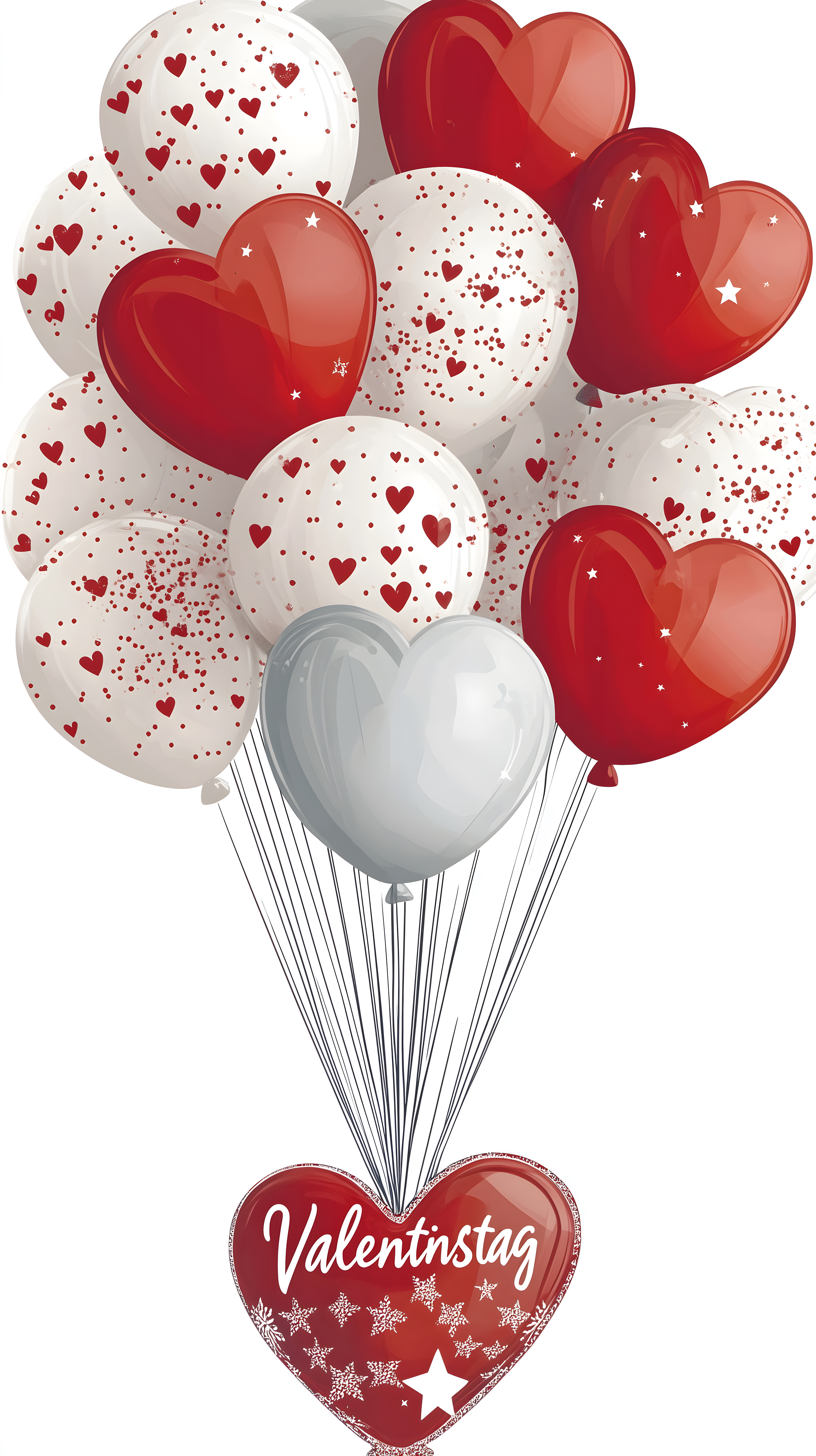 Dieses lebhafte Foto zeigt eine bunte Ansammlung von Luftballons in Form von roten und weißen Herzen. Die Ballons schweben vor einem weißen Hintergrund und sind mit Glitter und Sternen verziert, was eine festliche und romantische Stimmung erzeugt. Dieses kostenlose Stockfoto in hoher Auflösung unter einer Creative-Commons-Lizenz eignet sich perfekt für Valentinstags-Designs, Liebesgrüße in sozialen Medien, Hochzeitseinladungen und vieles mehr.