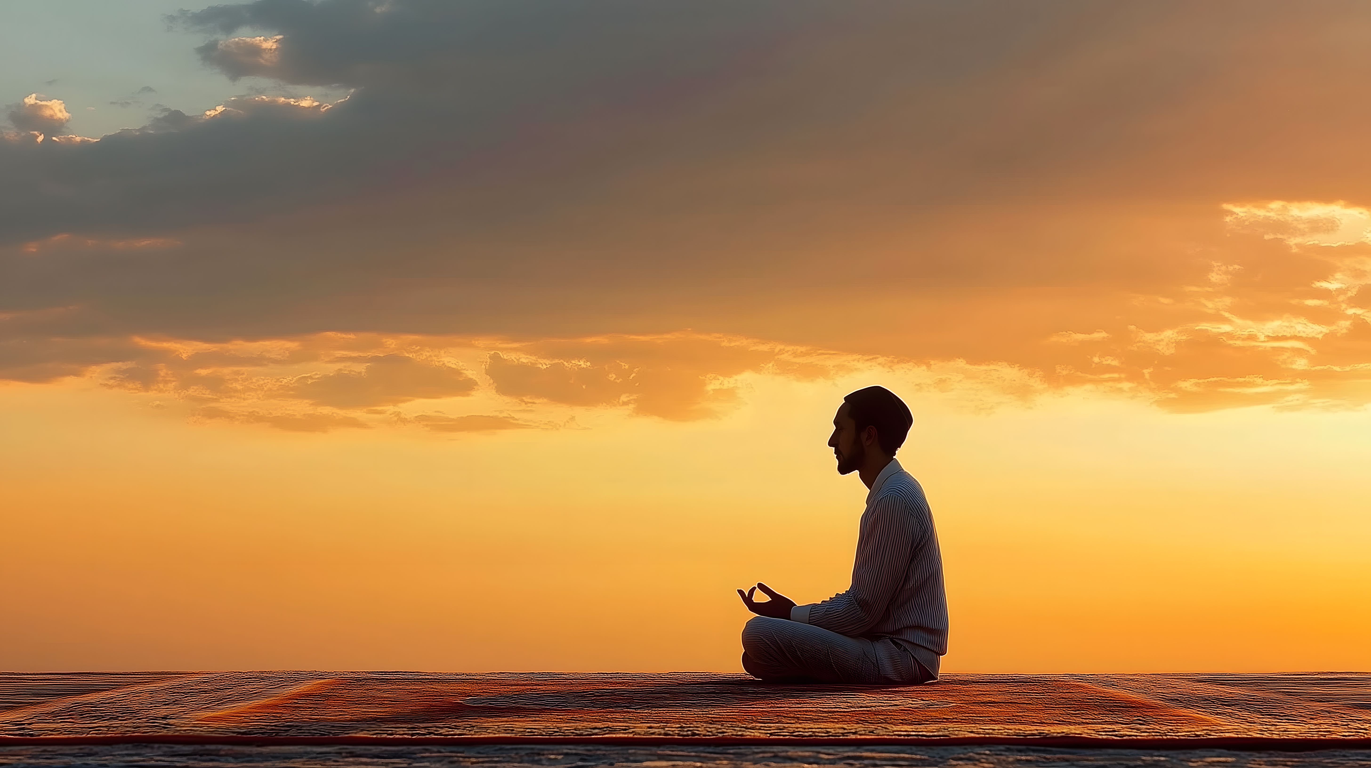 Dieses eindrucksvolle Foto zeigt einen meditierenden Mann, der bei Sonnenuntergang auf einem Holzsteg sitzt und die faszinierende Szenerie betrachtet. Die warmen, orangefarbenen Töne des Himmels spiegeln sich in der Stille der umgebenden Natur wider, was eine friedvolle und meditative Atmosphäre schafft. Dieses Stockfoto eignet sich hervorragend für die Verwendung in Blogs, Newslettern, Social-Media-Beiträgen oder Werbekampagnen, die Entspannung, Spiritualität oder eine Verbindung zur Natur vermitteln möchten. Es ist in hoher Auflösung und unter einer Creative-Commons-Lizenz frei verfügbar.