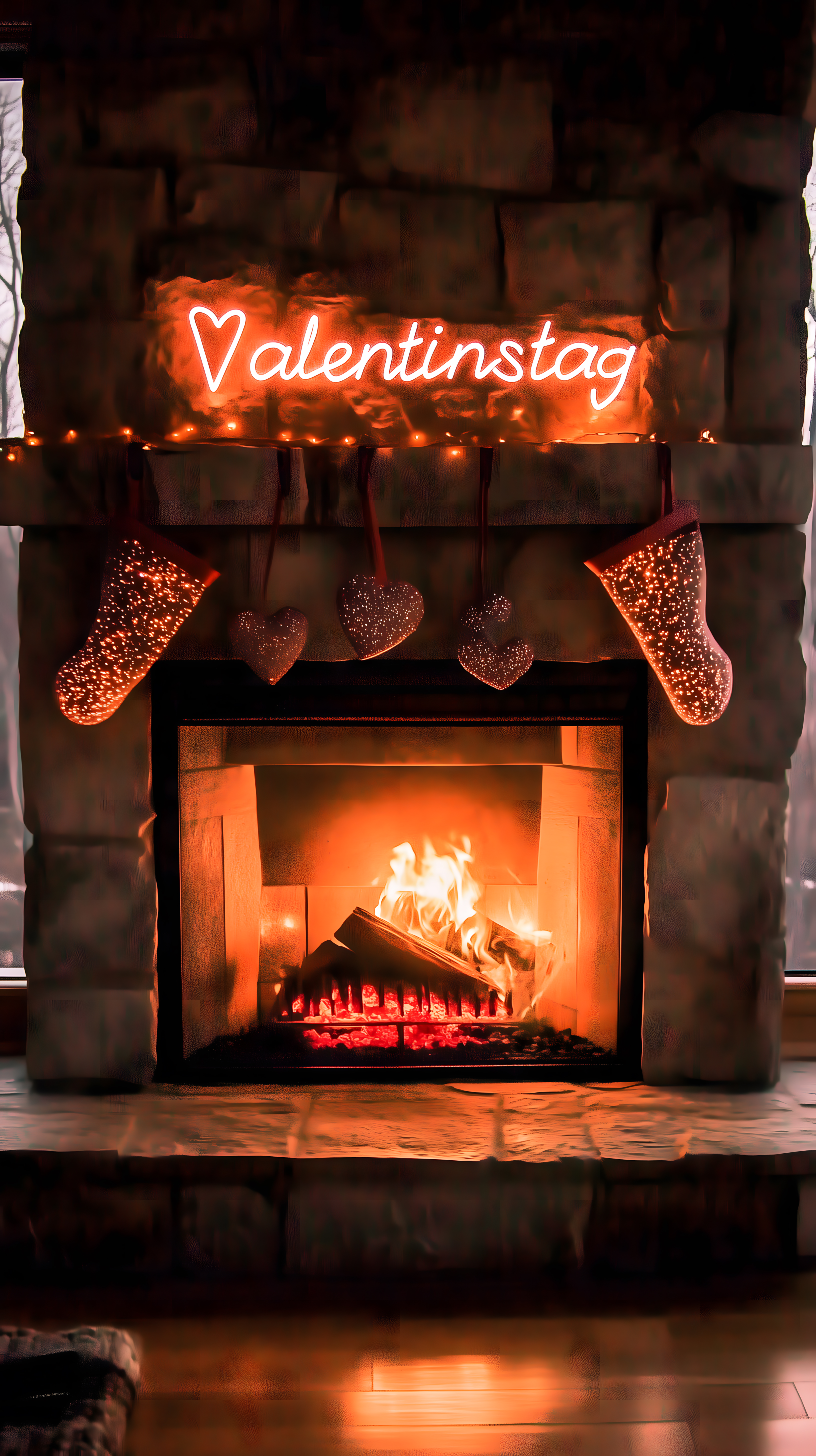 Dieses Foto zeigt einen stimmungsvollen Kaminofen, der liebevoll für den Valentinstag dekoriert wurde. Im Vordergrund sind rote, glitzernde Herzen zu sehen, die an der Kamineinfassung hängen. Das prasselnde Feuer im Inneren verbreitet eine romantische Atmosphäre und gemütliche Wärme. Das Bild eignet sich hervorragend als kostenloses Stockfoto für Blogs, Newsletter, Social-Media-Posts oder Werbematerialien rund um den Valentinstag. Die hochauflösende Aufnahme steht unter einer Creative-Commons-Lizenz zur Verfügung.