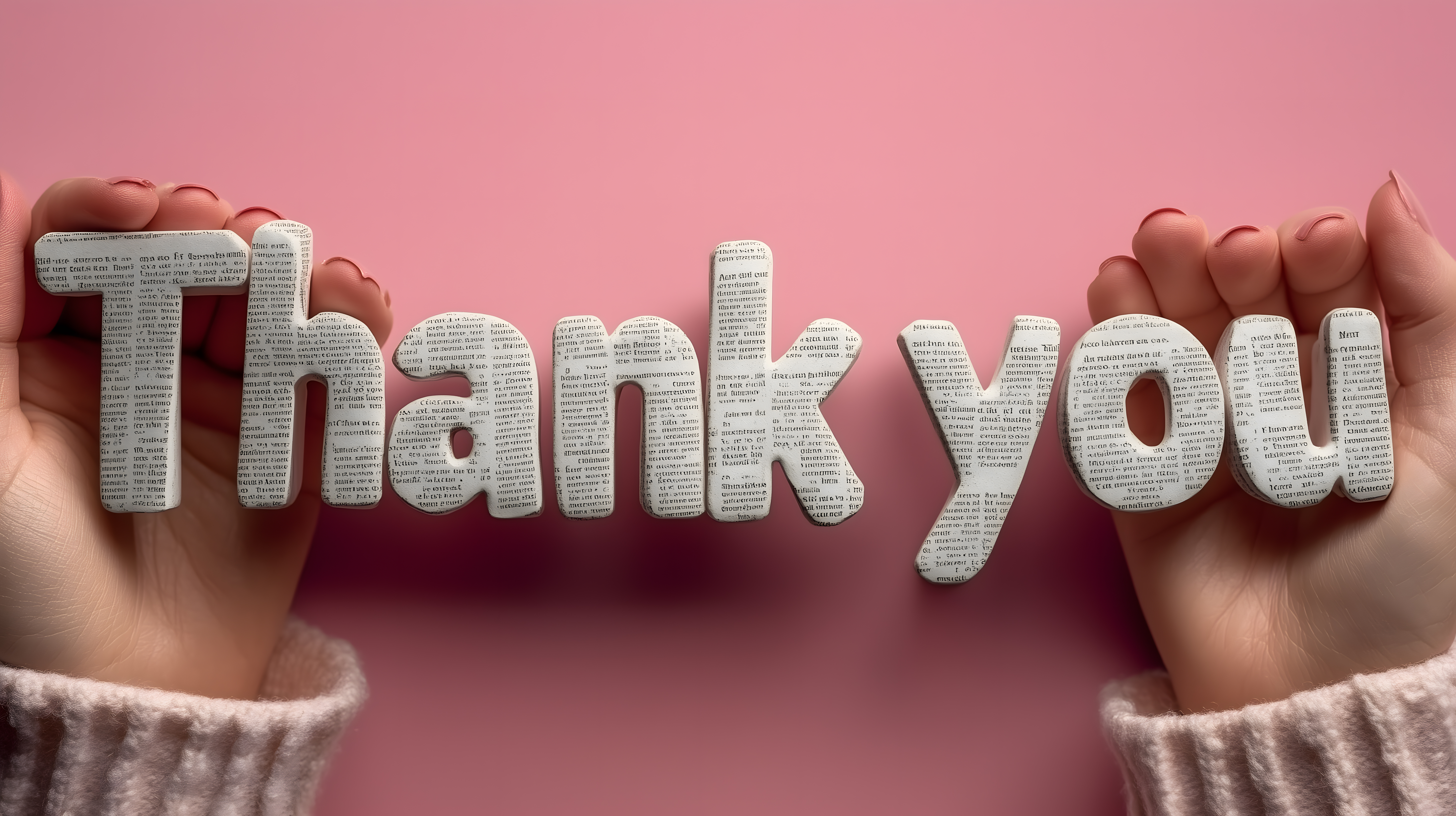 Das Bild zeigt eine kreative Dankesgeste, dargestellt durch aus Zeitungspapier ausgeschnittene Buchstaben auf einem rosa Hintergrund. Die Hände formen den Schriftzug 'Thank you', was einen Ausdruck der Dankbarkeit und Wertschätzung symbolisiert. Die minimalistische, grafische Gestaltung und das einfarbige rosa Setting schaffen eine zurückhaltend-elegante Atmosphäre. Dieses Foto eignet sich hervorragend als Stockmotiv für die Verwendung in Blogs, Newslettern, Social-Media-Beiträgen oder Werbekampagnen, bei denen eine positive, dankbare Stimmung vermittelt werden soll. Das hochauflösende Bild ist als kostenloses Stockfoto unter einer Creative-Commons-Lizenz verfügbar.