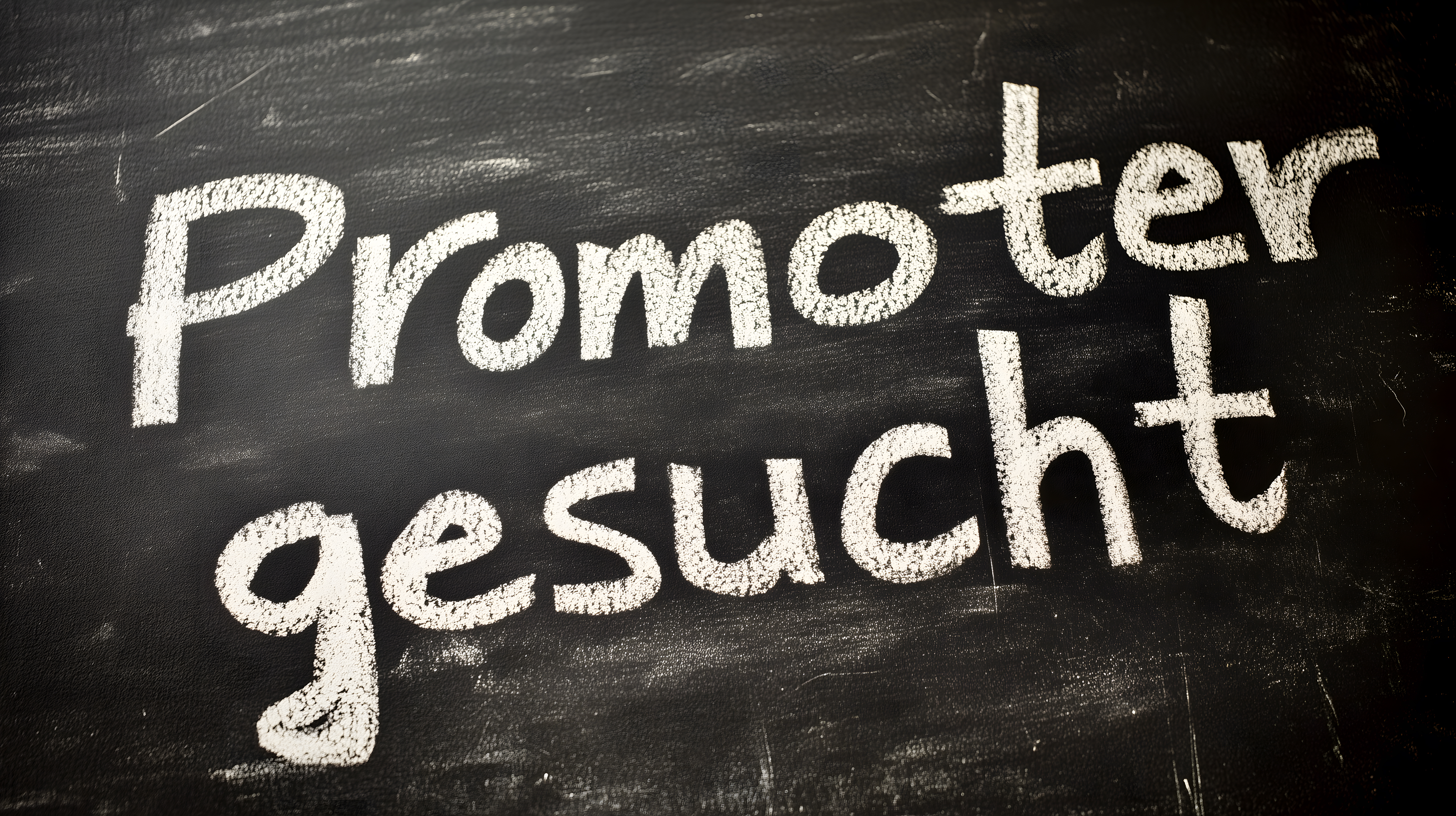 Das Bild zeigt eine klassische Kreidetafel mit der Aufschrift 'Promoter gesucht' in weißer Kreide. Die Tafel befindet sich vor einem dunklen Hintergrund, was dem Bild eine kontraststarke, visuelle Anziehungskraft verleiht. Diese Optik eignet sich hervorragend für den Einsatz als kostenloses Stockfoto in Blogbeiträgen, Newslettern oder Social-Media-Postings, die sich um Themen wie Stellenausschreibungen, Recruiting oder Jobsuche drehen. Das hochauflösende Foto steht unter einer Creative-Commons-Lizenz zur Verfügung und kann daher frei genutzt werden.