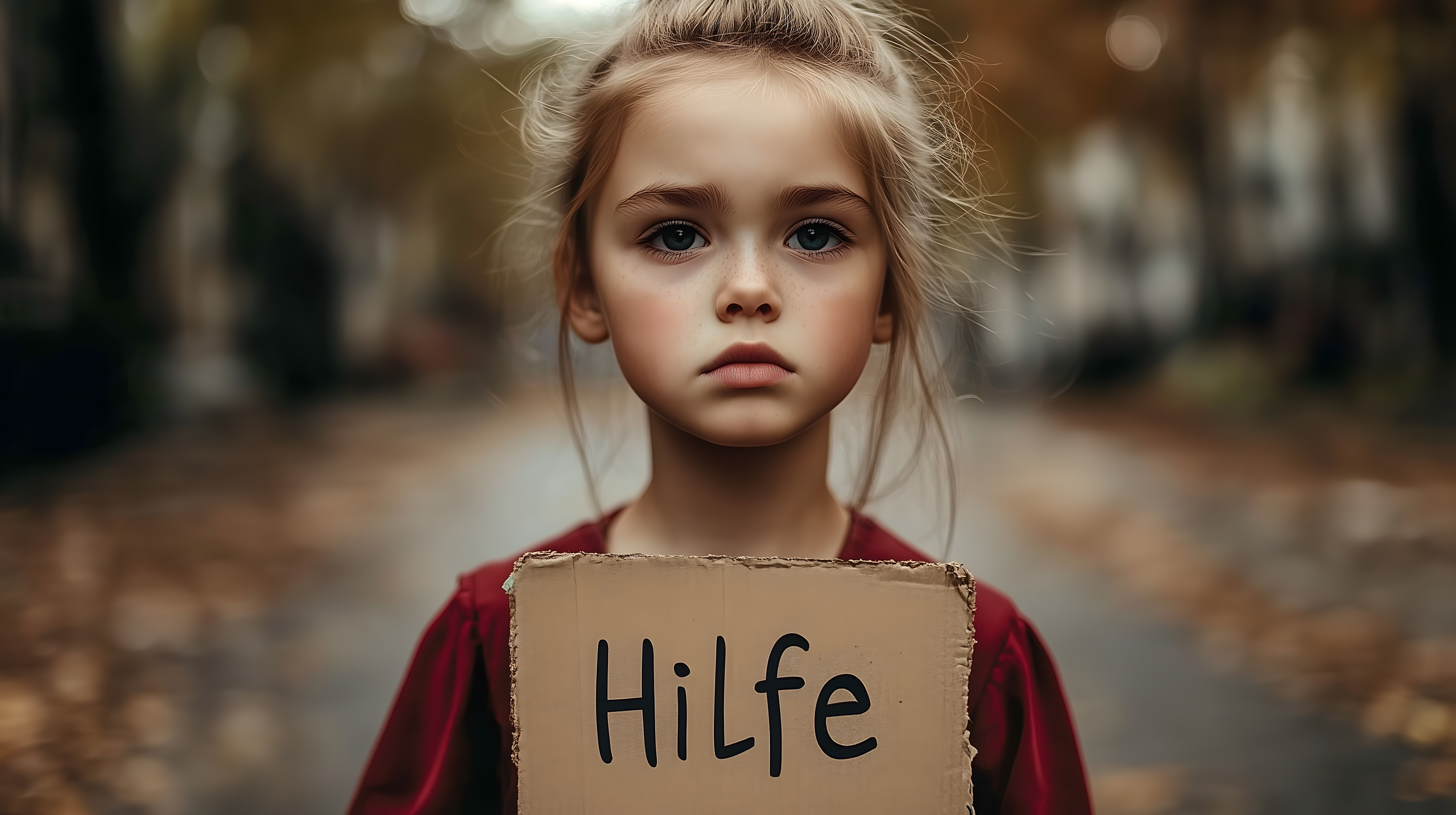 Das Foto zeigt ein junges Mädchen, das ein selbstgebasteltes Schild mit der Aufschrift 'Hilfe' in den Händen hält. Ihr Gesichtsausdruck ist besorgt und verzweifelt. Die Umgebung ist verschwommen und scheint auf eine schwierige Lebenssituation hinzudeuten. Dieses Bild kann eine starke Botschaft über Armut, soziale Ungleichheit und die Notwendigkeit von Unterstützung für Menschen in Notlagen vermitteln. Es eignet sich hervorragend als kostenloses Stockfoto in hoher Auflösung für Beiträge in Blogs, Newslettern oder sozialen Medien, die sich diesen Themen widmen. Die Nutzung steht unter einer Creative-Commons-Lizenz zur Verfügung.