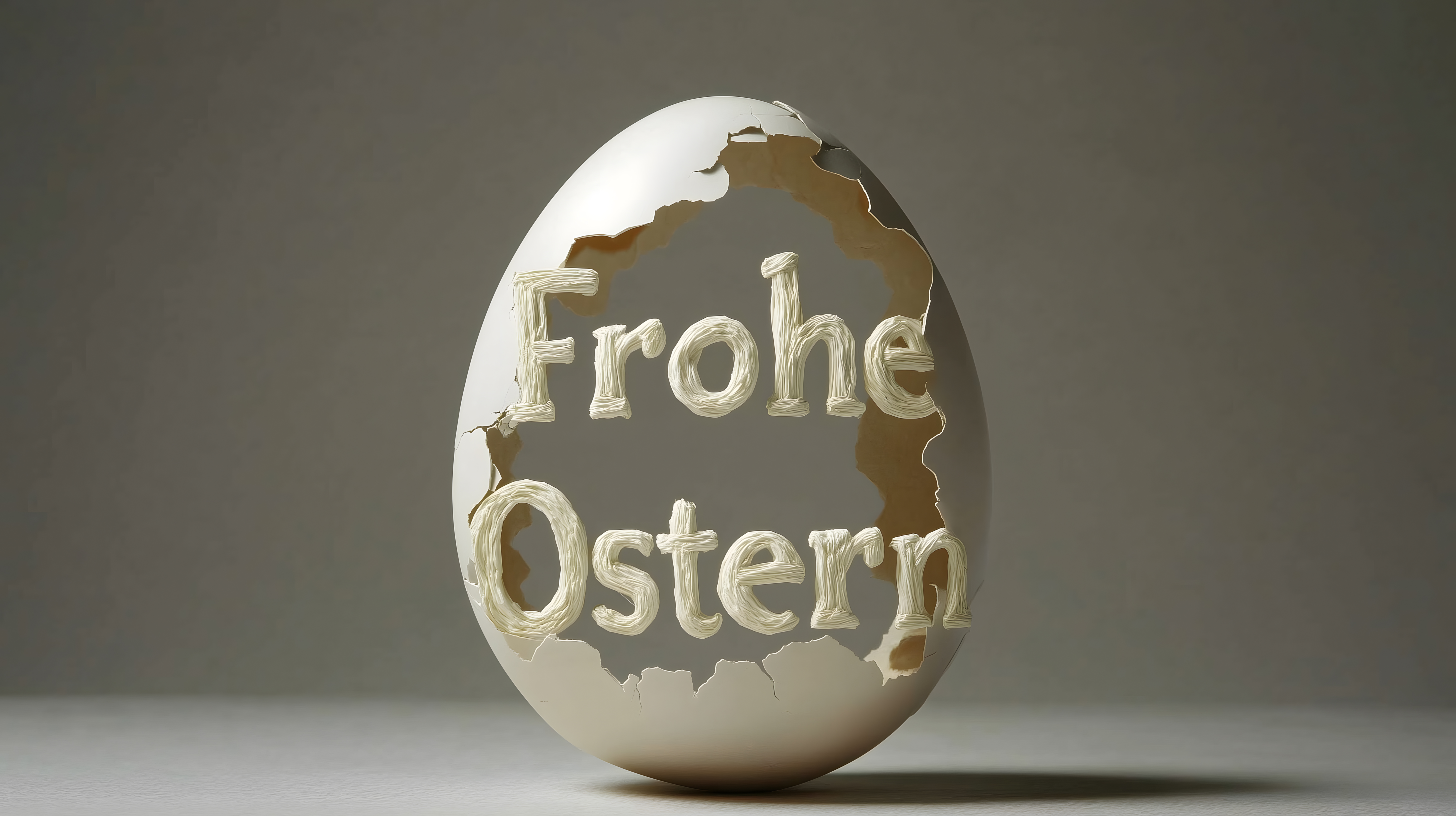 Dieses Bild zeigt ein weißes Osterei, dessen Schale teilweise gebrochen ist. Auf der intakten Schale ist der Schriftzug 'Frohe Ostern' zu lesen. Der Kontrast zwischen der glatten, weißen Oberfläche und den zerbrochenen Stellen verleiht dem Motiv eine minimalistisch-moderne Ästhetik. Dieses Stockfoto eignet sich hervorragend als Hintergrundbild oder Dekorelement für Ostergrüße, Frühlingskampagnen und Newsletter. Es ist in hoher Auflösung verfügbar und unter einer Creative-Commons-Lizenz frei nutzbar.
