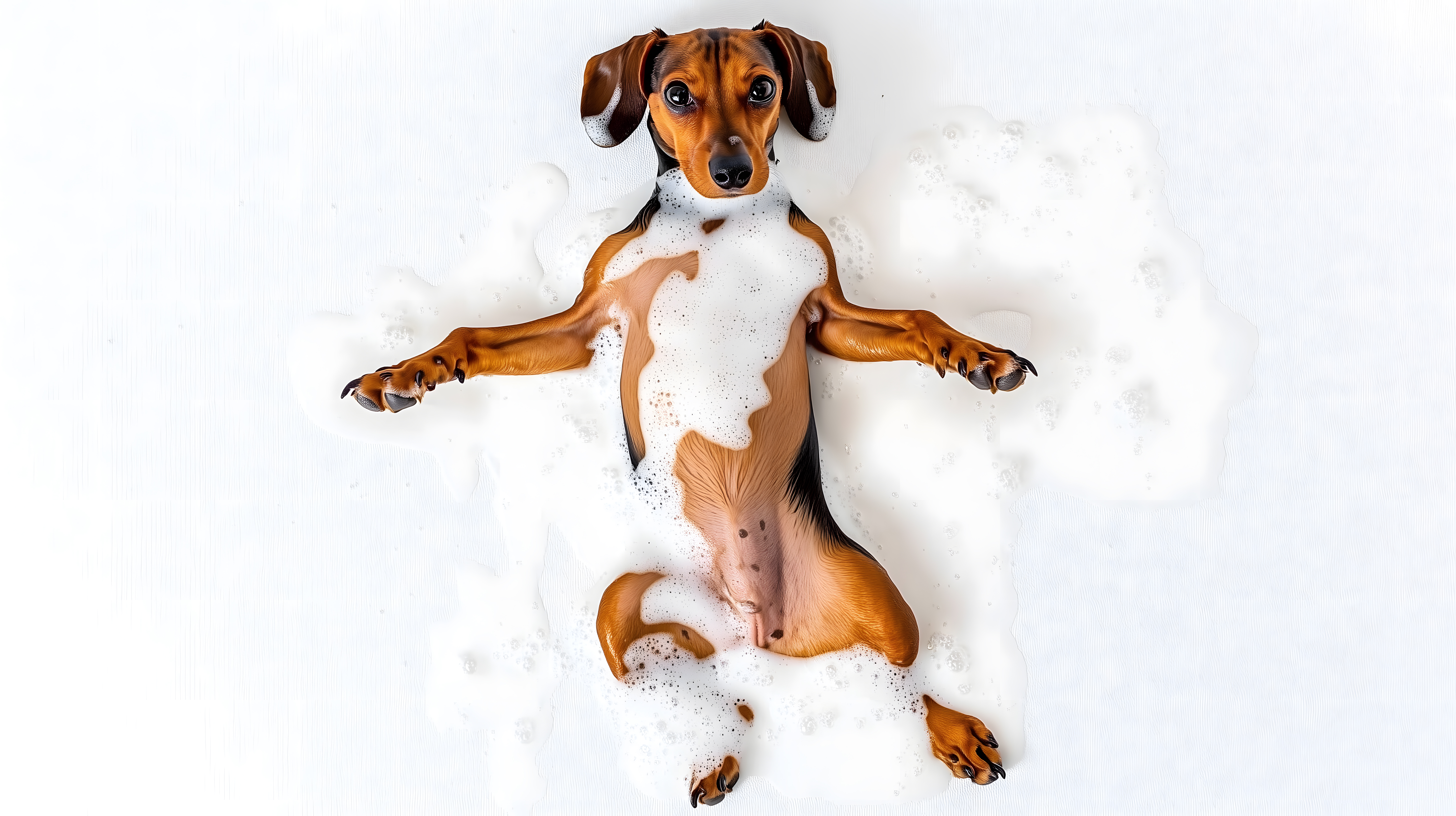 Das Foto zeigt einen entzückenden Dackel, der mitten in einem Schaumbad sitzt. Der Hund blickt direkt in die Kamera, seine Augen sind groß und voller Konzentration. Sein braunes Fell bildet einen schönen Kontrast zu dem weißen Schaum, der ihn umgibt. Das Foto wurde in einem minimalistischen, weißen Studio aufgenommen, wodurch der Fokus ganz auf dem verspielten Hund liegt. Dieses Stockfoto eignet sich perfekt für die Verwendung in Blogs, Newslettern, Social-Media-Beiträgen oder Werbematerialien, bei denen ein niedlicher, tierischer Blickfang gewünscht ist. Es ist in hoher Auflösung verfügbar und unter einer Creative-Commons-Lizenz kostenlos nutzbar.