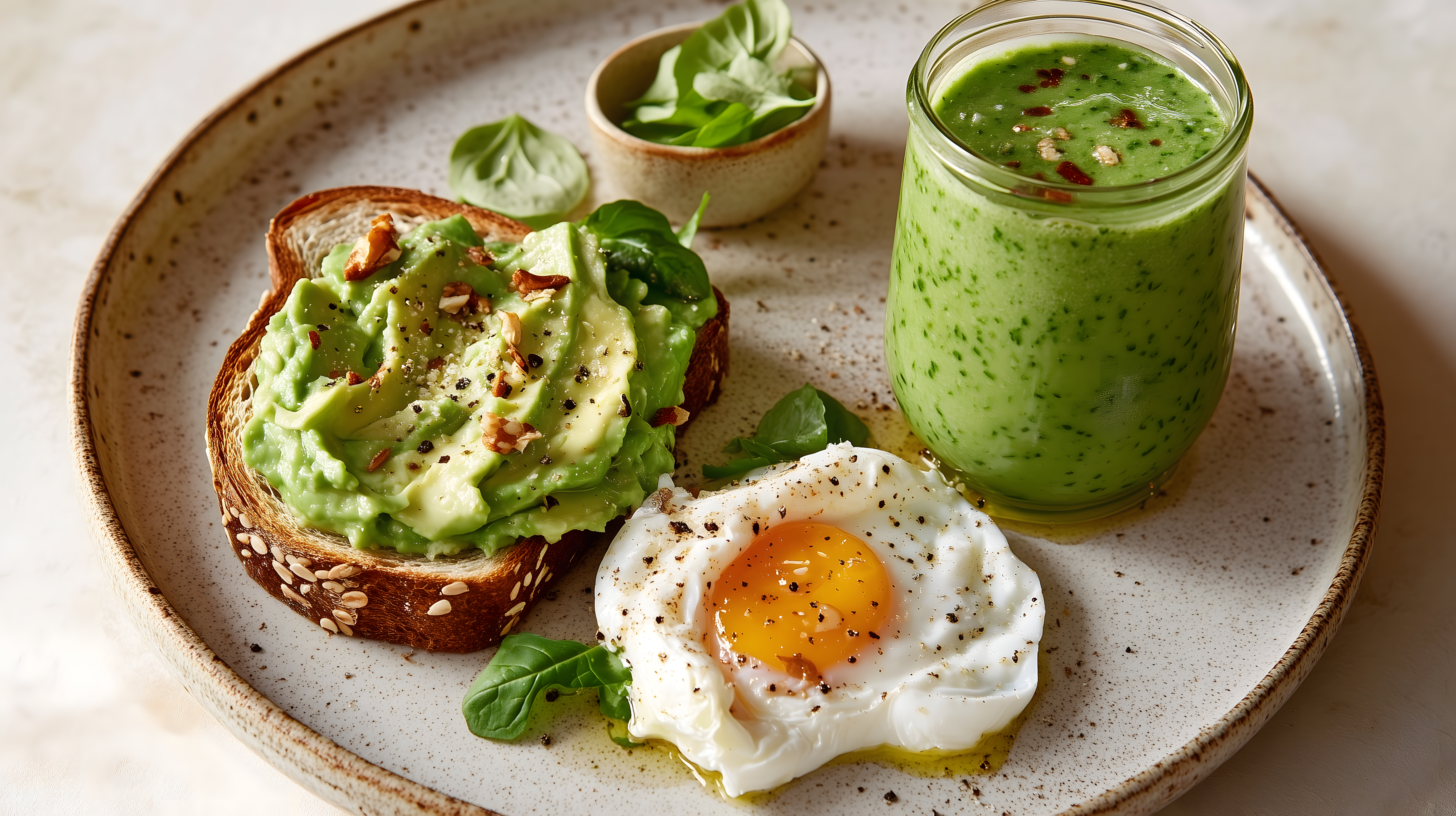 Dieses Foto zeigt ein appetitliches Frühstück mit Avocado-Toast, einem pochierten Ei und einem grünen Smoothie. Der Teller ist auf einem rustikalen Holzbrett angerichtet und sorgt so für einen natürlichen und stimmungsvollen Kontrast. Die grüne Farbe des Smoothies und des Avocado-Toasts bringt einen frischen, gesunden Look in das Bild. Die Kombination aus knusprigem Toast, cremiger Avocado und dem saftigen Ei verspricht ein leckeres und ausgewogenes Geschmackserlebnis. Dieses Foto eignet sich perfekt für Blogs, Newsletter oder Social-Media-Beiträge zum Thema gesunde Ernährung, Wellness und bewusster Lebensstil. Als kostenloses Stockfoto in hoher Auflösung und unter Creative-Commons-Lizenz ist es vielseitig einsetzbar.
