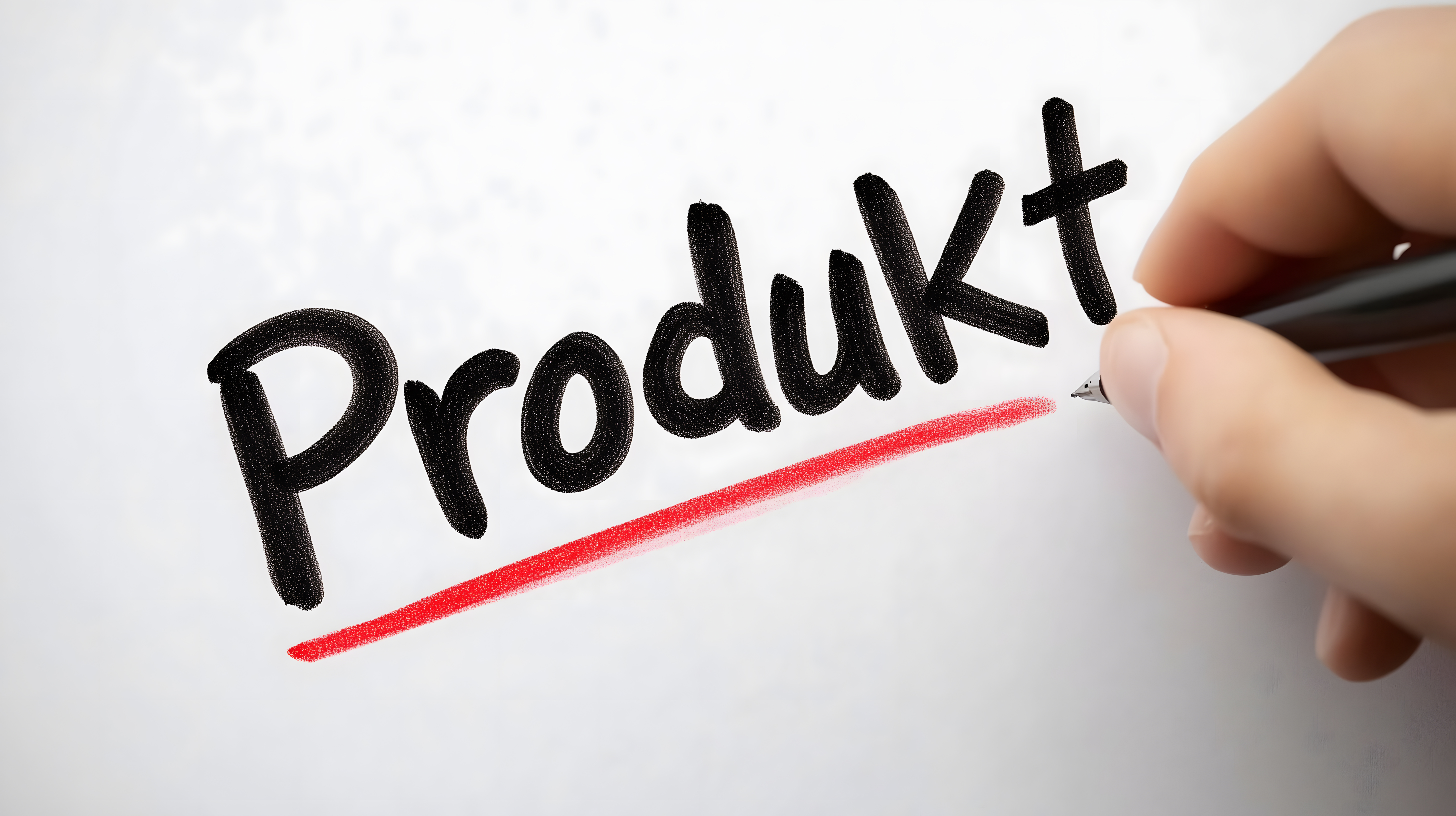 Das Bild zeigt einen Produkttitel, der von einer Hand mit einem Stift auf einem weißen Hintergrund geschrieben wird. Der Schriftzug "Produkt" ist in Schwarz gehalten, während eine rote Linie darunter gezogen ist, um die Bedeutung und den Fokus zu betonen. Das Foto vermittelt ein Gefühl von Kreativität, Geschäftssinn und Vermarktung. Es eignet sich hervorragend als Stockfoto für Blogs, Newsletter, Social-Media-Posts oder Werbematerialien, die sich mit Produkten, Marketing, Vertrieb oder Branding beschäftigen. Das hochauflösende Bild steht unter einer Creative-Commons-Lizenz zur kostenlosen Verwendung zur Verfügung.