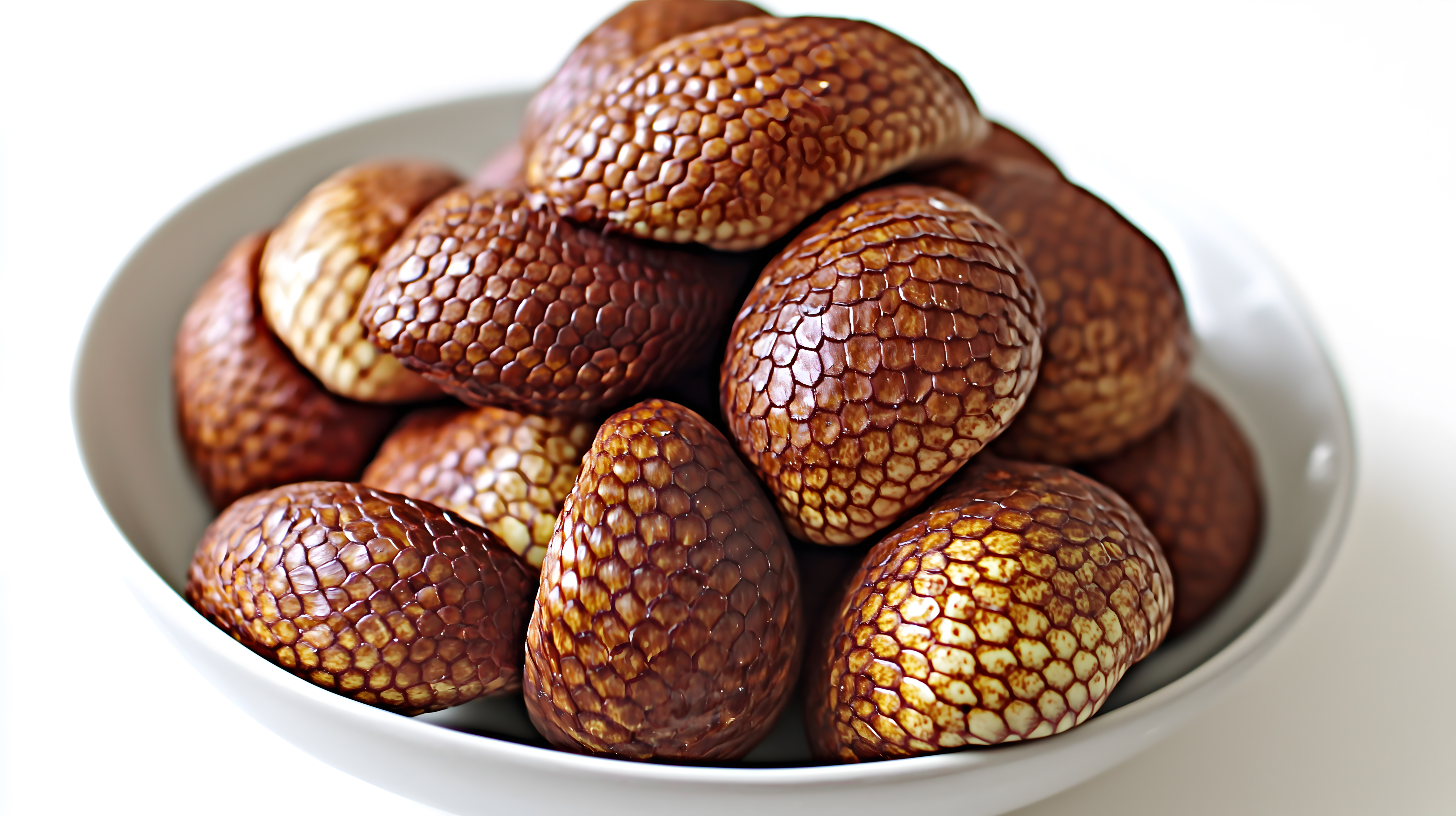 Dieses Foto zeigt eine Nahaufnahme einer Vielzahl von Salakfrüchten, auch bekannt als Schlangenfrucht, auf einem weißen Teller. Die tropischen Früchte haben eine charakteristische braune, schuppige Schale, die ein interessantes und strukturiertes Muster bildet. Die Salakfrüchte sind ein exotisches botanisches Motiv, das sich hervorragend für den Einsatz in Lebensmittelfotos, Naturstilleben oder als Hintergrundbild eignet. Dieses hochauflösende Stockfoto ist unter einer Creative-Commons-Lizenz verfügbar und kann kostenlos für Blogs, Newsletter, Social-Media-Beiträge oder andere kreative Projekte genutzt werden.