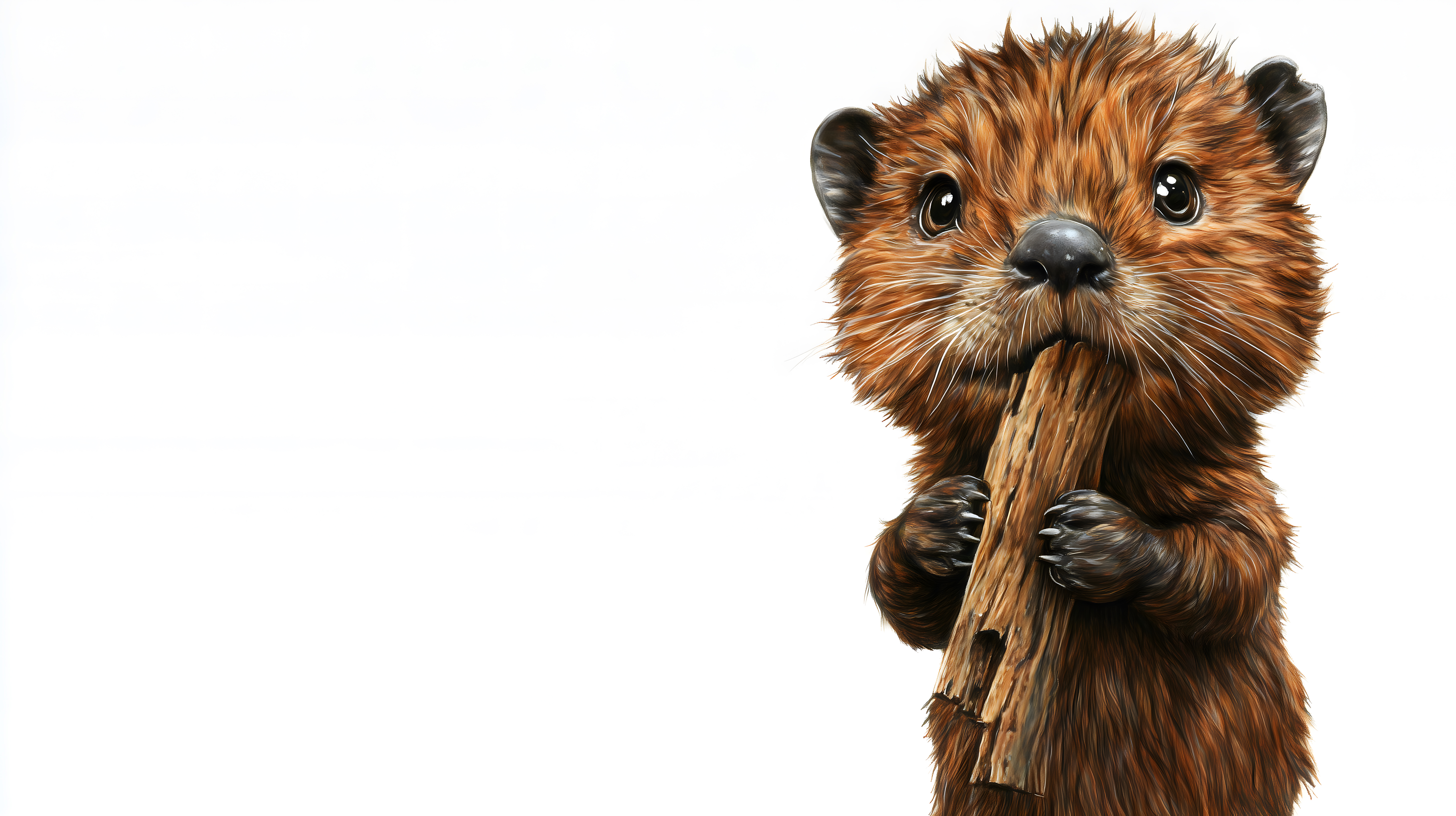 Das Bild zeigt einen niedlichen Babybibber, der ein Holzstück in seinen Pranken hält. Mit seinen großen Augen, seinem flauschigen rötlich-braunen Fell und der detaillierten Darstellung wirkt das Tier sehr süß und zart. Die weiße Hintergrundgestaltung unterstreicht den Fokus auf den Bibber und lässt ihn strahlend in Szene treten. Dieses hochauflösende Stockfoto eignet sich hervorragend für den Einsatz in Blogs, Newslettern, Social-Media-Posts oder Werbematerialien, wenn ein niedliches, naturnahes Tiermotiv gesucht wird. Es steht unter der Creative-Commons-Lizenz zur kostenlosen Verwendung zur Verfügung.