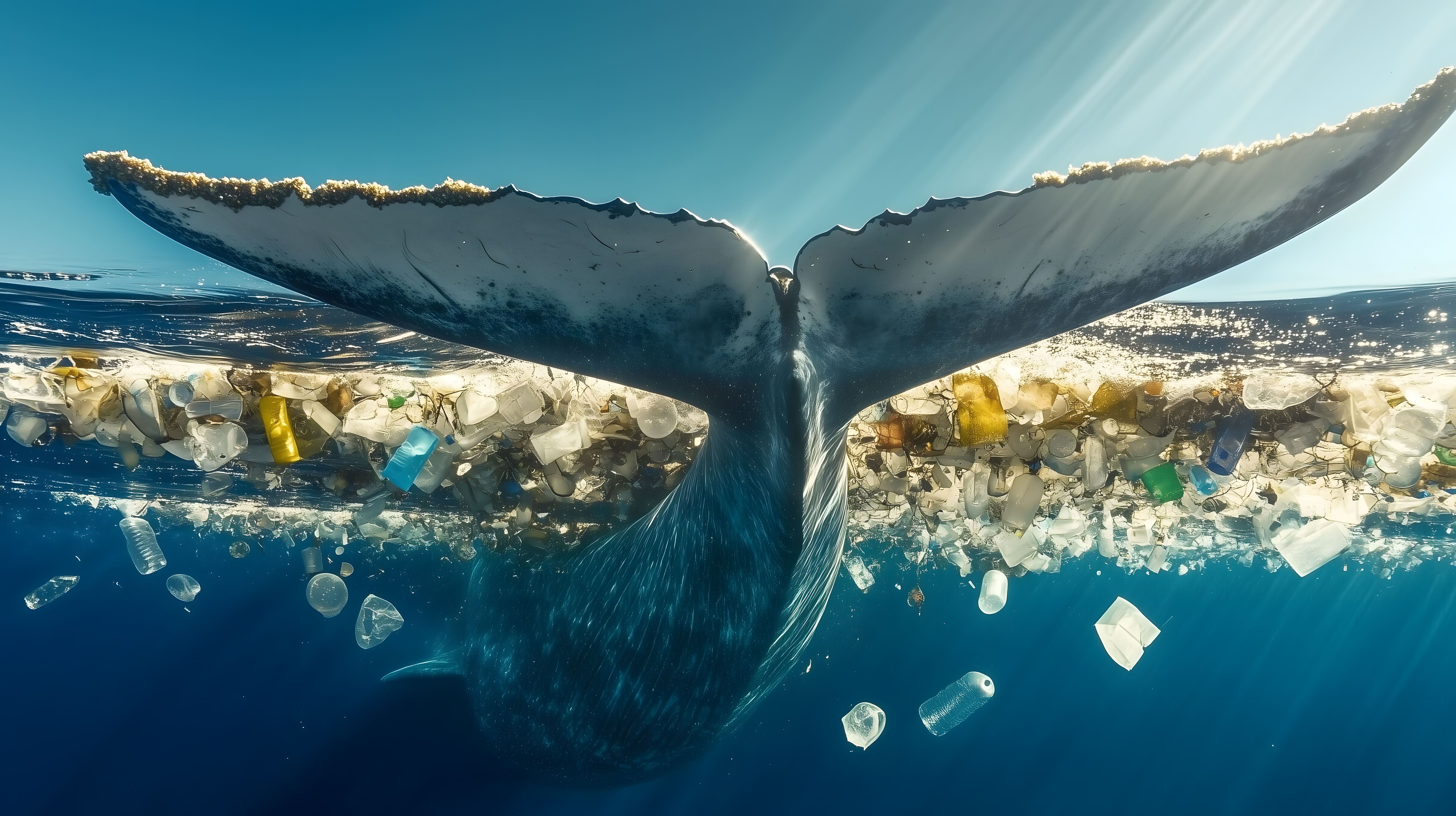 Dieses eindrucksvolle Foto zeigt einen gewaltigen Wal, der zwischen schwimmendem Plastikabfall auftaucht. Die dramatische Perspektive aus Unterwassersicht und die kontrastreichen Farben - das tiefe Blau des Meeres und das Weiß des Wals - erzeugen eine starke visuelle Botschaft. Das Bild verdeutlicht die zunehmende Bedrohung der Meeresbewohner durch Plastikvermutzung und den dringenden Bedarf an Umweltschutzmaßnahmen. Als hochwertige, kostenlose Stockfoto-Aufnahme in hoher Auflösung und unter Creative-Commons-Lizenz ist dieses Bild perfekt für Blog-Beiträge, Newsletter oder Werbematerialien zum Thema Nachhaltigkeit, Umweltschutz und Bewahrung der Natur geeignet.