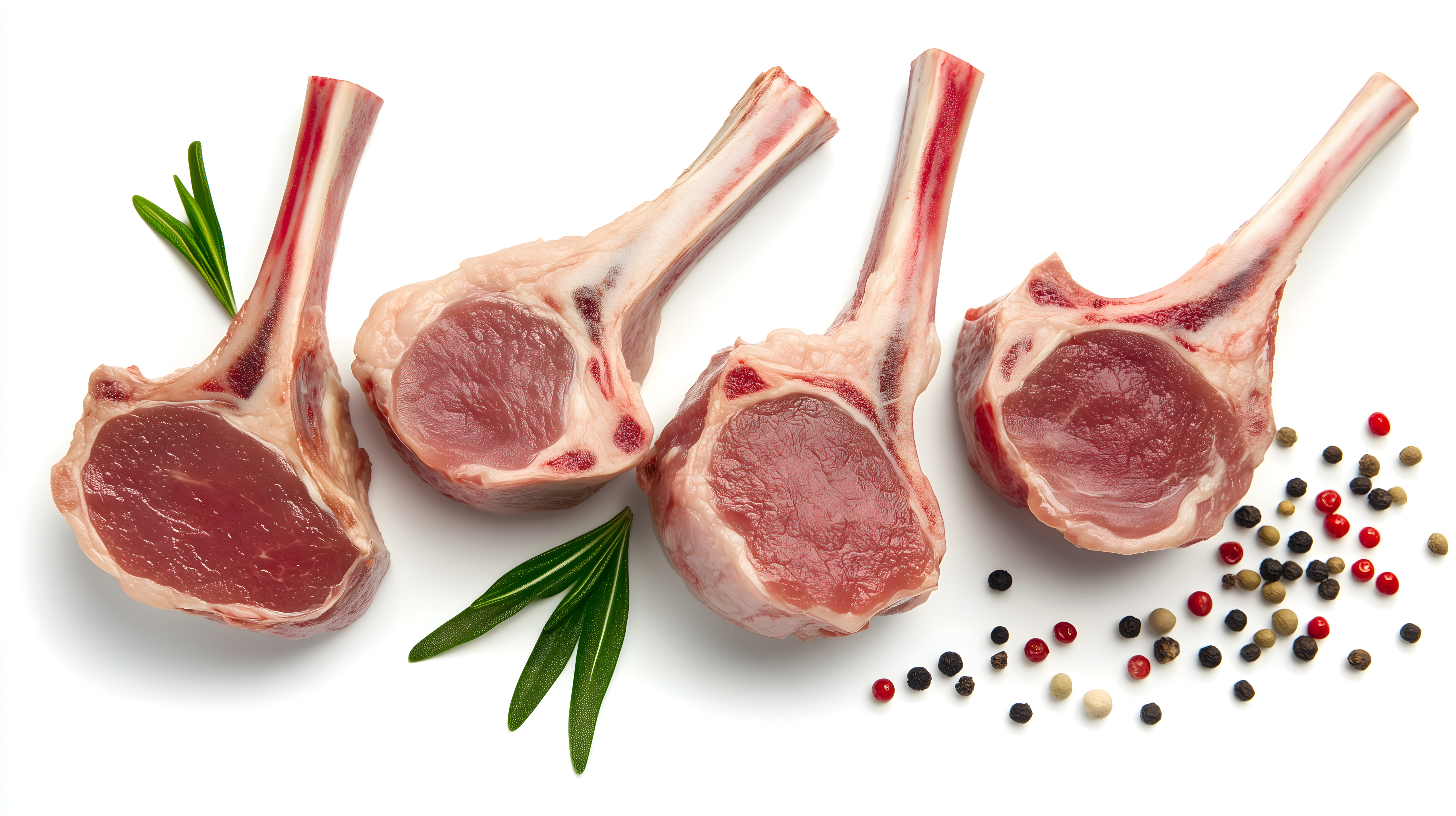 Dieses köstliche Stockfoto zeigt frische, saftige Lammkoteletts mit Rosmarin und Pfeffer auf einem weißen Hintergrund. Das Bild besticht durch seine natürliche Anmutung und den appetitlichen Charakter der Fleischstücke. Die Koteletts sind sorgfältig angeordnet und von Gewürzen sowie frischem Rosmarin umgeben, was eine kulinarische Stimmung vermittelt. Dieses hochaufgelöste Foto eignet sich hervorragend für den Einsatz in Rezeptbüchern, Kochzeitschriften, Lebensmittelwerbung oder auf Lifestyle-Blogs. Als kostenloses Stockfoto unter der Creative-Commons-Lizenz kann es frei verwendet werden.