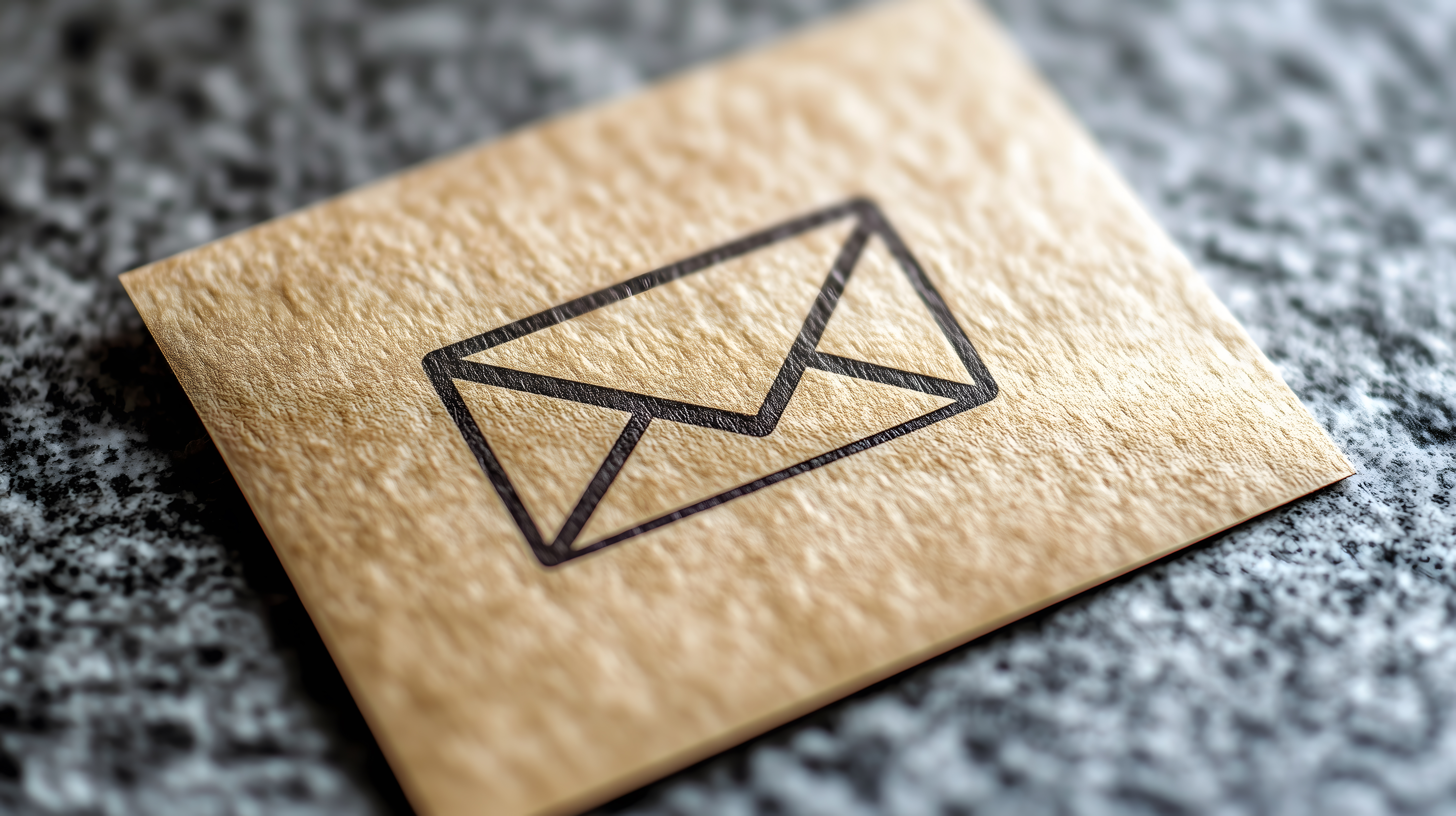 Das Bild zeigt ein minimalistische Symbol für einen Briefumschlag, das auf einer rauen, grauen Holzoberfläche platziert ist. Der Kontrast zwischen dem warmen Holzton und dem schwarzen Symbol verleiht dem Bild eine natürliche, aber moderne Ästhetik. Das Symbol kann für verschiedene Zwecke verwendet werden, z.B. in Briefköpfen, auf Visitenkarten, in E-Mail-Signaturen oder in Social-Media-Posts. Als kostenloses Stockfoto in hoher Auflösung und unter Creative-Commons-Lizenz eignet es sich hervorragend für Blogger, Grafikdesigner, Marketingexperten und andere Kreative.