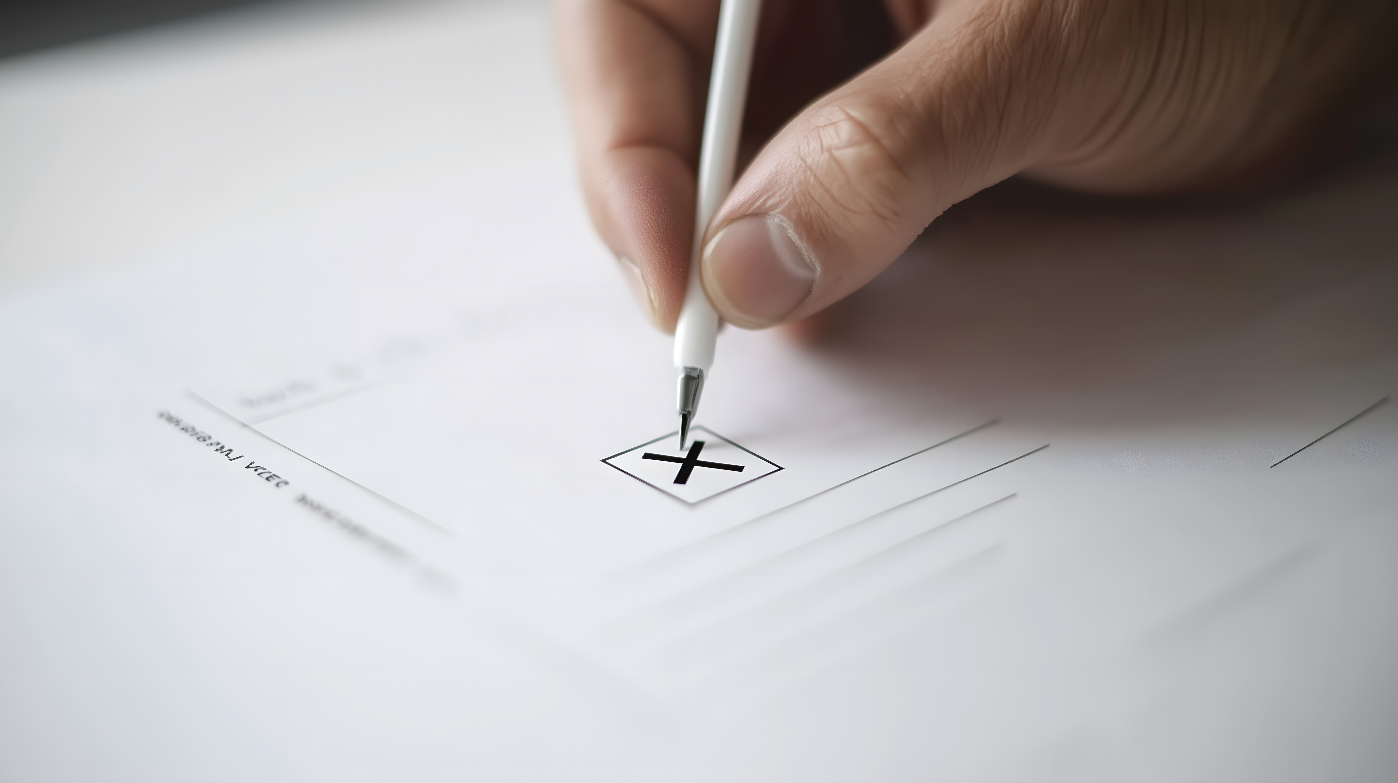 Das Bild zeigt eine Nahaufnahme eines Wahlzettels mit einem deutlichen Kreuz als Symbol für eine Abstimmung oder Wahl. Der Wahlzettel liegt auf einem hellen, neutralen Hintergrund, wodurch der Fokus voll und ganz auf das Kreuz als Entscheidungsmarkierung gelenkt wird. Das Foto vermittelt die Konzepte von Demokratie, Wahlfreiheit und der Macht der Stimmabgabe. Es eignet sich hervorragend als kostenloses Stockfoto für Blogs, Newsletter, soziale Medien oder Werbematerialien zum Thema Politik, Wahlen und Entscheidungsfindung. Aufgrund der hohen Auflösung und der Creative-Commons-Lizenz kann das Bild frei und ohne Einschränkungen verwendet werden.
