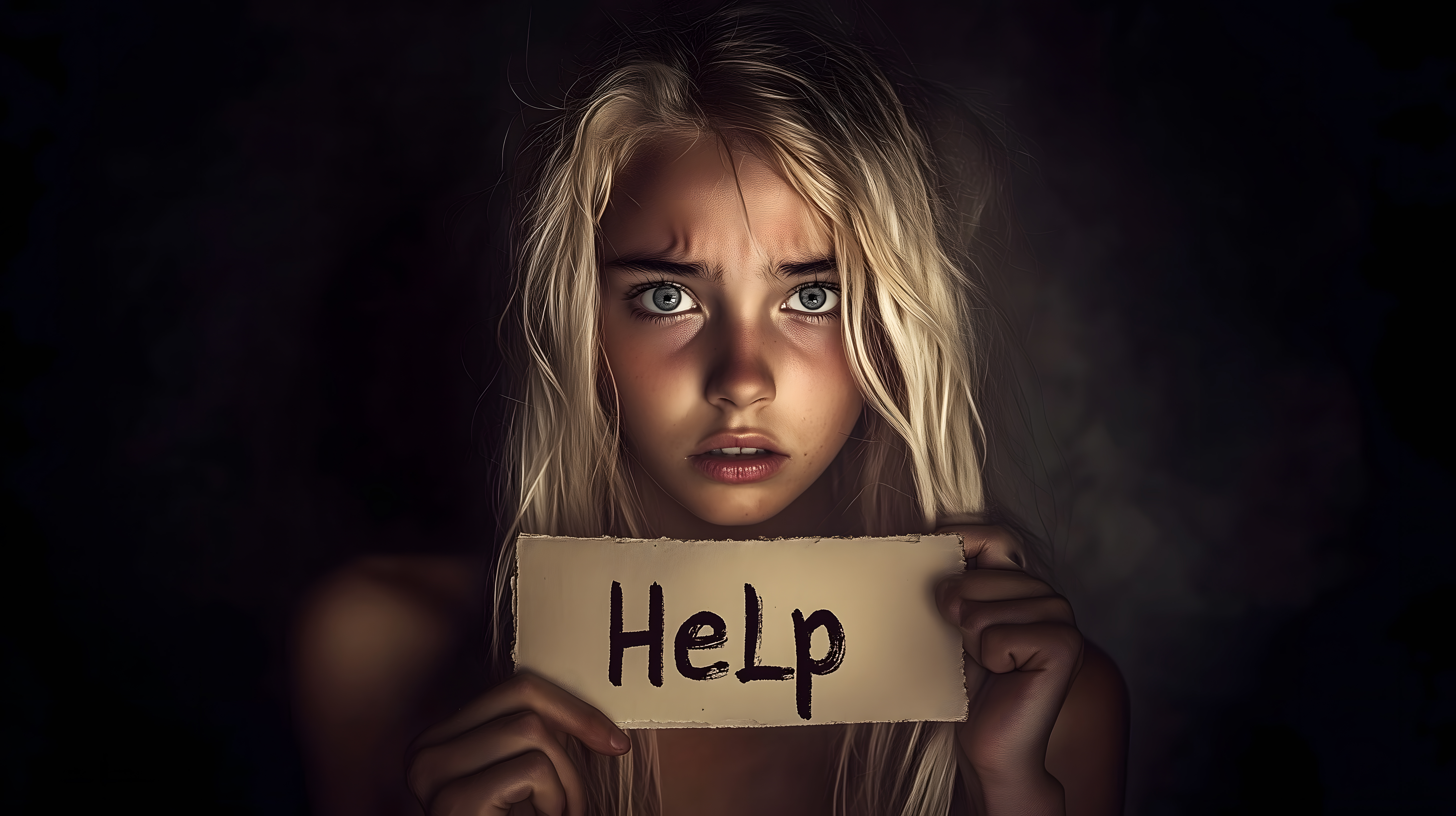 Das Bild zeigt eine junge, blonde Frau, die in einer dunklen Umgebung sitzt und ein selbstgeschriebenes Pappschild mit der Aufschrift 'Help' (Hilfe) in den Händen hält. Ihr Blick ist ernst und verzweifelt, die Augenbrauen zusammengezogen. Die Szenerie vermittelt eine Stimmung der Einsamkeit, Hilflosigkeit und Bedrohung. Das Foto eignet sich gut für den Einsatz in Artikeln, Blogbeiträgen oder Social-Media-Posts, die sich mit Themen wie Armut, Obdachlosigkeit, psychische Probleme oder allgemeinen Schwierigkeiten im Leben auseinandersetzen. Als kostenloses Stockfoto in hoher Auflösung unter einer Creative-Commons-Lizenz verfügbar, bietet es zahlreiche Möglichkeiten für kreative Projekte.