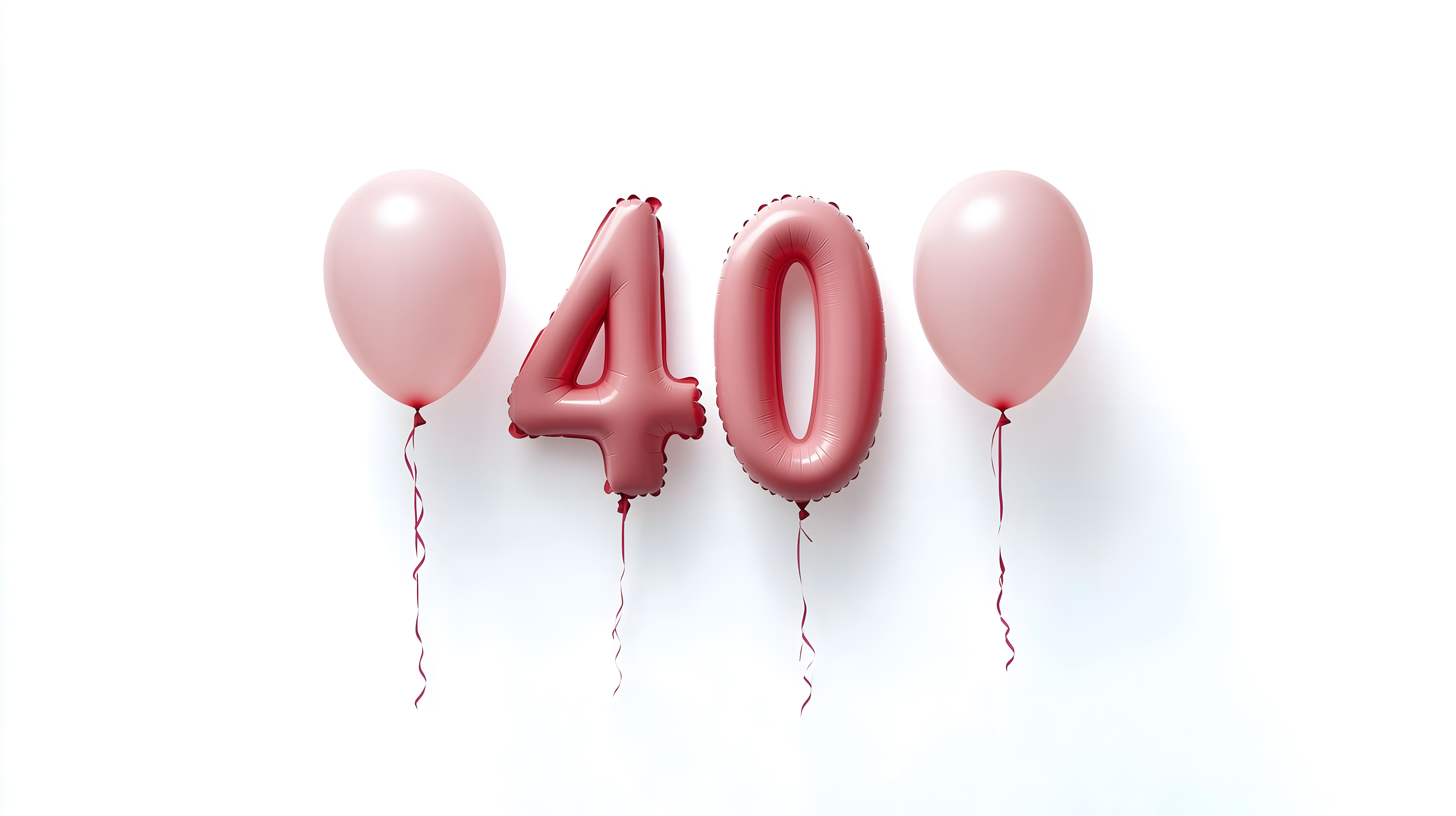 Das Bild zeigt vier große, rote, ballonförmige Helium-Luftballons, die den 40. Geburtstag symbolisieren, umgeben von zwei kleineren, hellrosa Luftballons. Die Ballons schweben vor einem weißen Hintergrund, was dem Foto einen minimalistischen, modernen und festlichen Look verleiht. Dieses kostenlose Stockfoto in hoher Auflösung eignet sich hervorragend für die Verwendung in Geburtstagskarten, Einladungen, Newslettern oder Werbematerial rund um Geburtstage und Jubiläen. Es steht unter der Creative-Commons-Lizenz zur Verfügung und kann somit unkompliziert in verschiedensten Projekten eingesetzt werden.