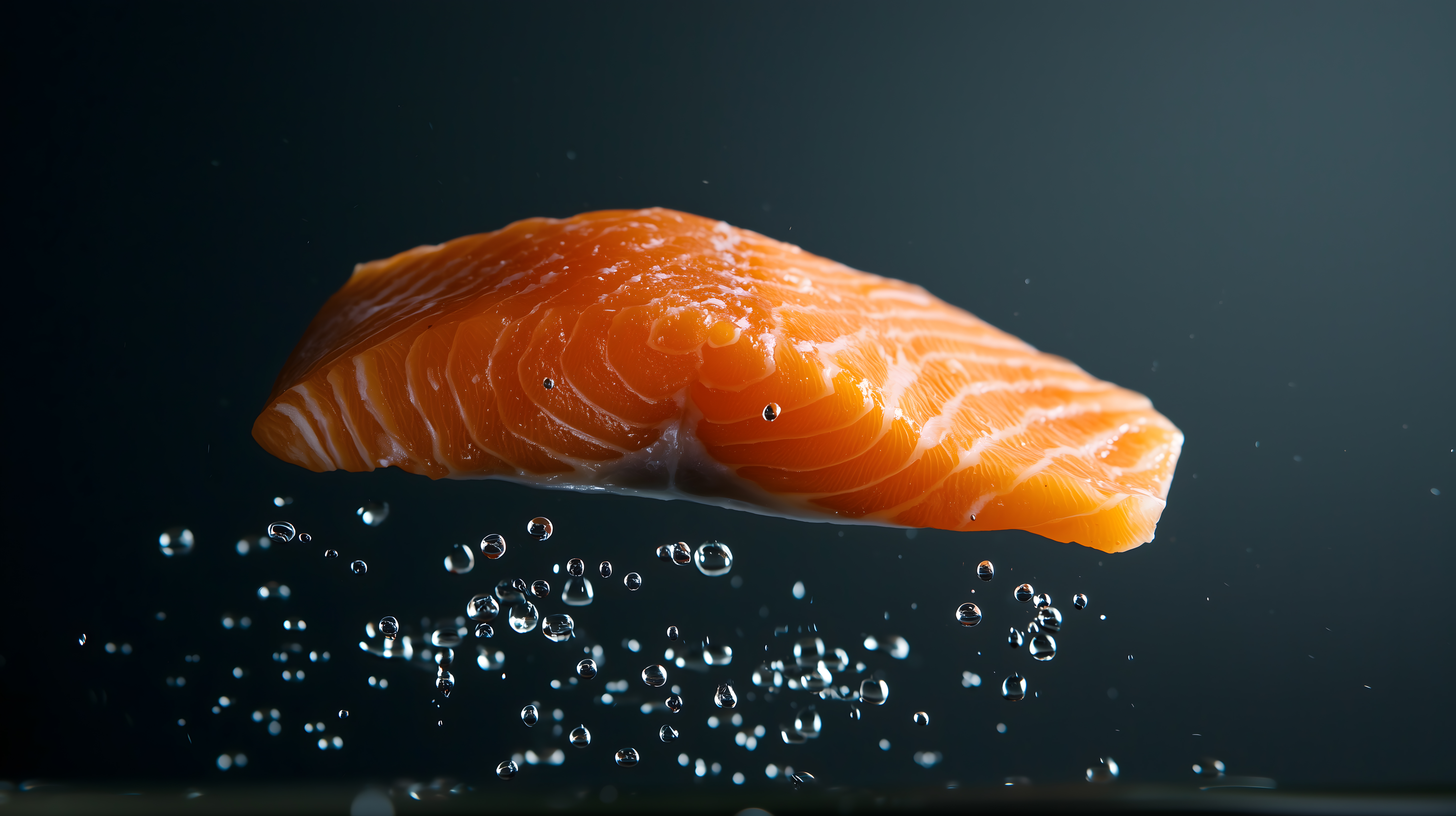 Dieses hochauflösende Stockfoto zeigt ein frisch geschmörtes Lachsfilet, das von perlenden Wassertropfen umgeben ist. Der kontrastreiche, dunkle Hintergrund lässt die leuchtend orangeroten Lachs-Fasern und die kristallinen Wasserperlen besonders eindrucksvoll zur Geltung kommen. Das Bild eignet sich hervorragend für Verwendungen in der Gastronomie, Kulinarik und Werbung, beispielsweise für Kochrezepte, Menüs, Lebensmittel-Präsentationen oder Produktplatzierungen. Als hochwertiges Stockfoto unter einer Creative-Commons-Lizenz steht es für vielfältige Einsatzmöglichkeiten in Blogs, Newslettern und Social-Media-Kanälen zur Verfügung.