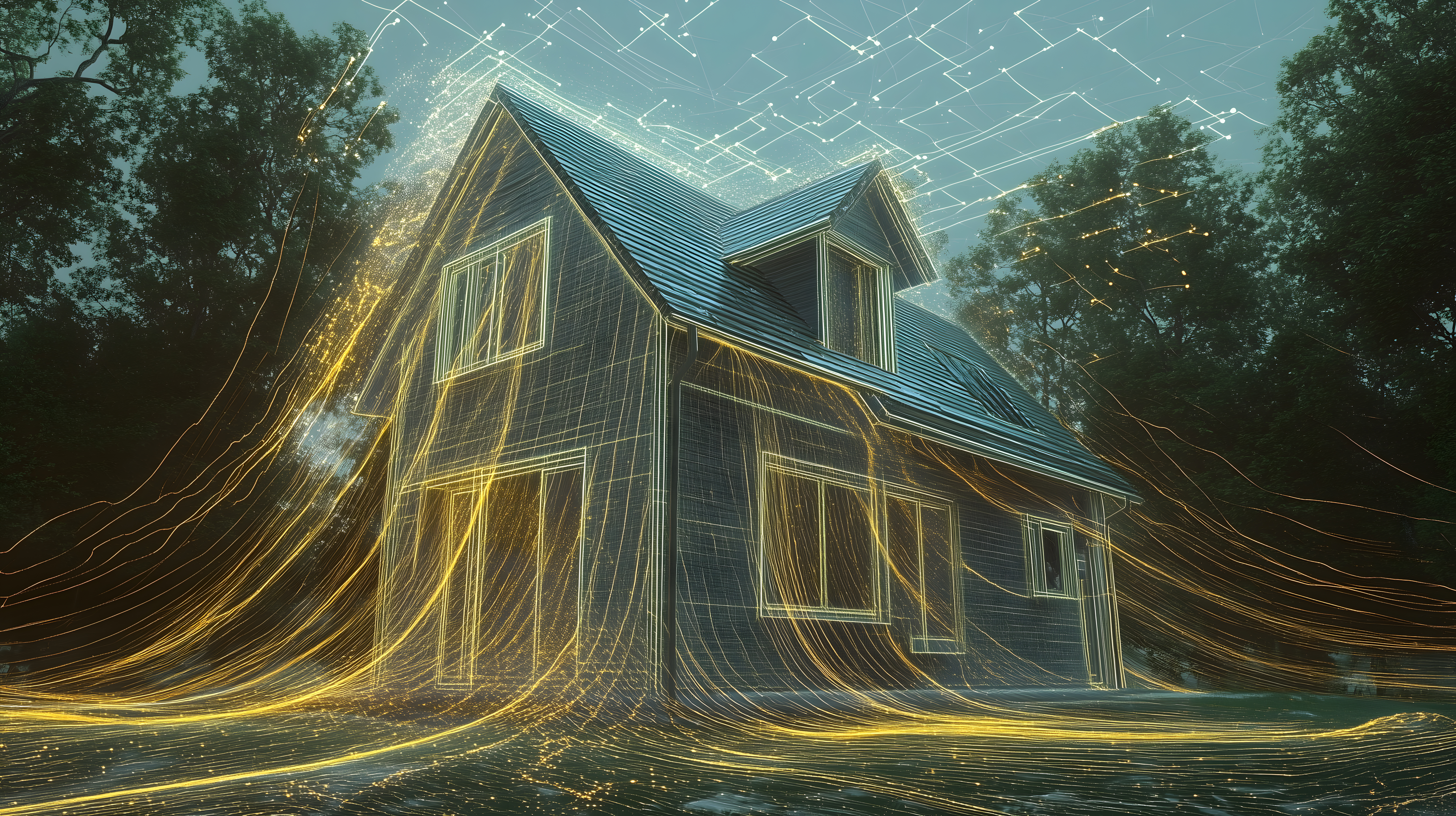 Digitales Landhaus mit leuchtenden Energie-Adern von Marco Verch unter Creative Commons 2.0